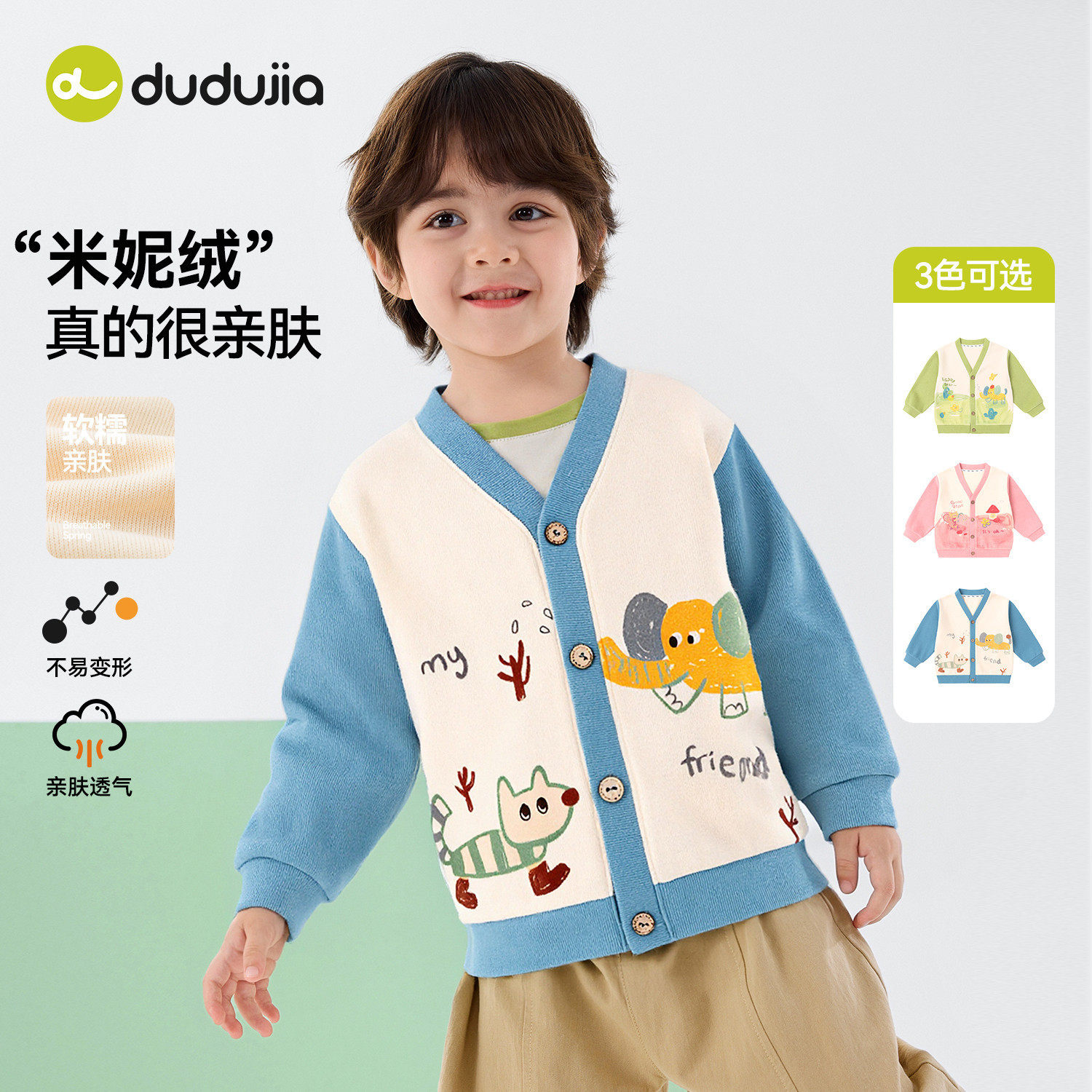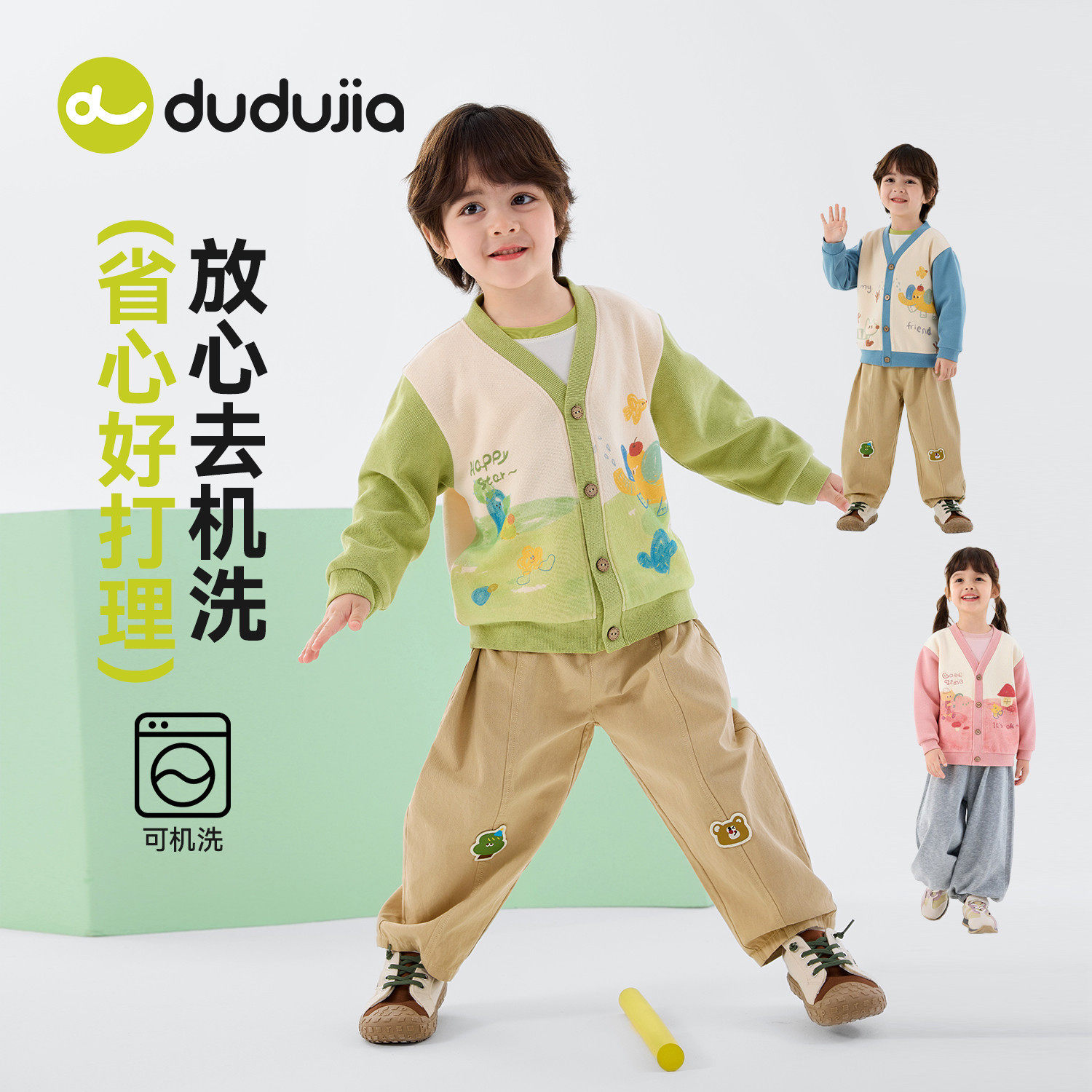 dudujia儿童外套春装男童针织宽松女童开衫春秋宝宝上衣可爱童装