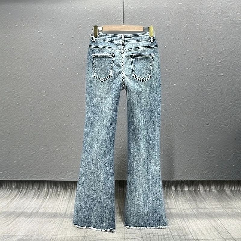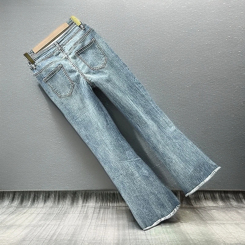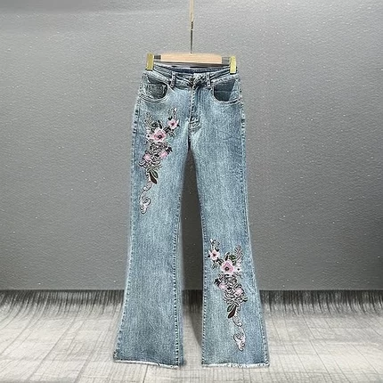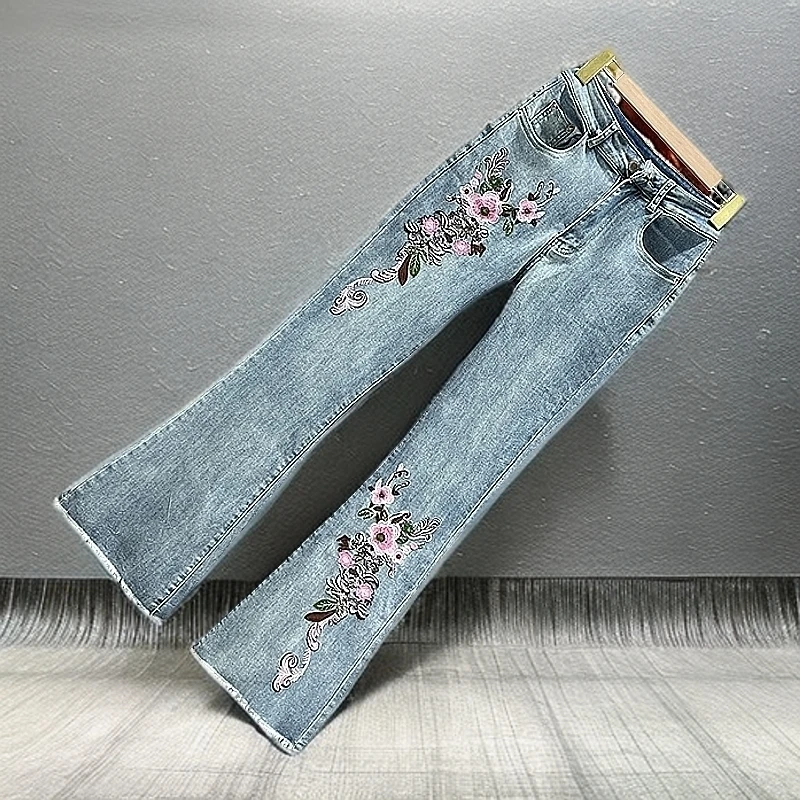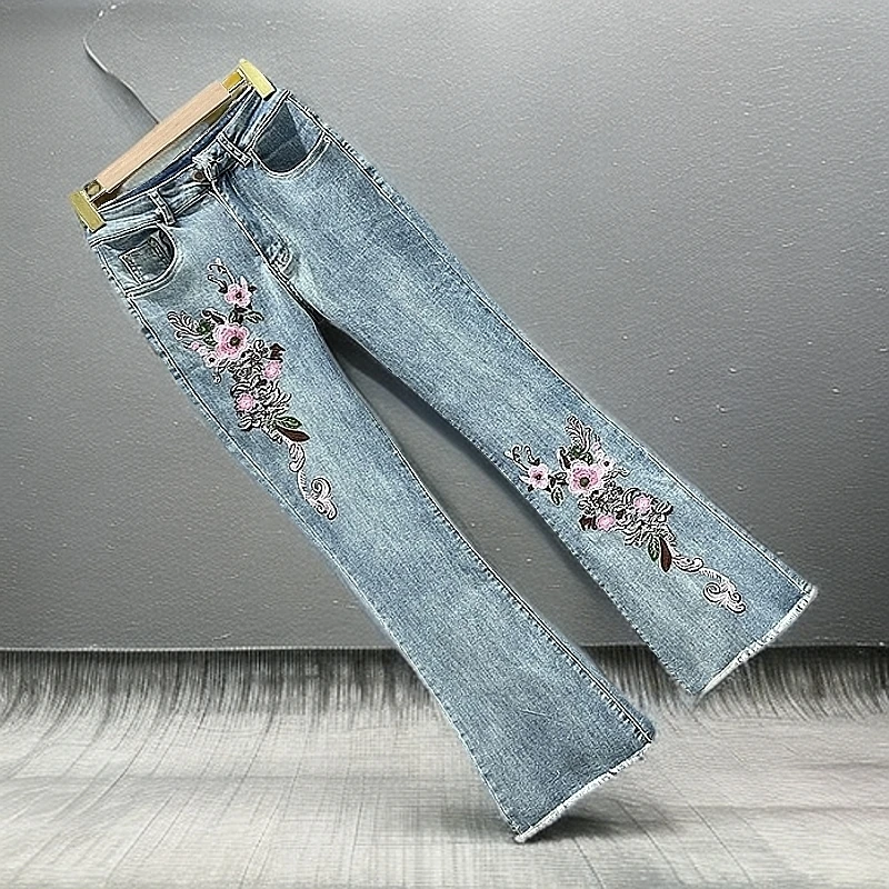 网红同款2025夏季新款绣花微喇牛仔裤女高腰修身显瘦洋气九分裤