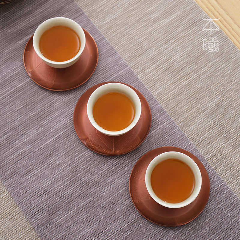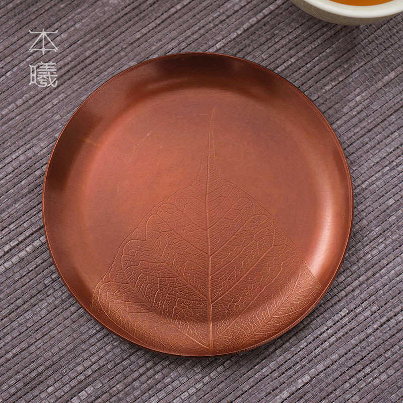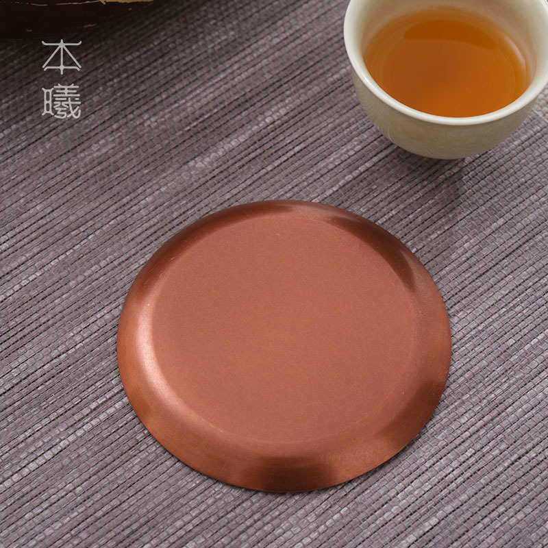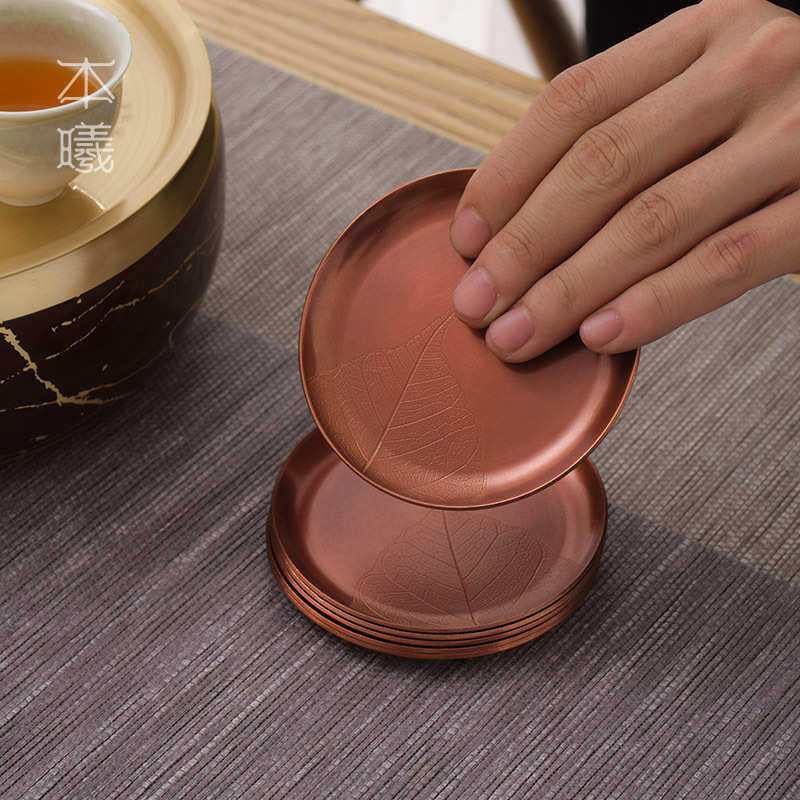 紫铜复古茶托茶杯垫手工日式禅意主人杯杯托圆形功夫茶具茶道配件