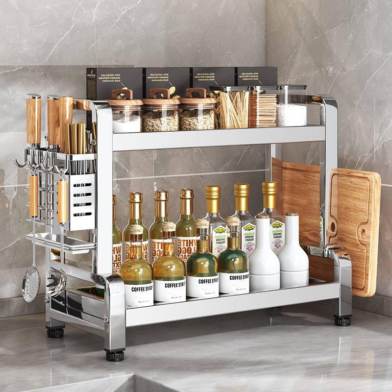 不锈钢厨房置物架多功能台面调料品架子调料架调味罐调味料收纳架