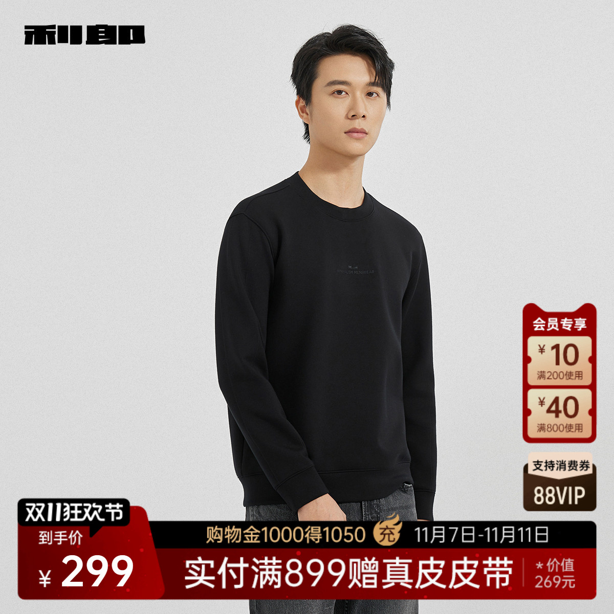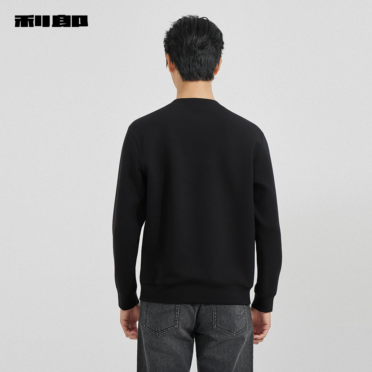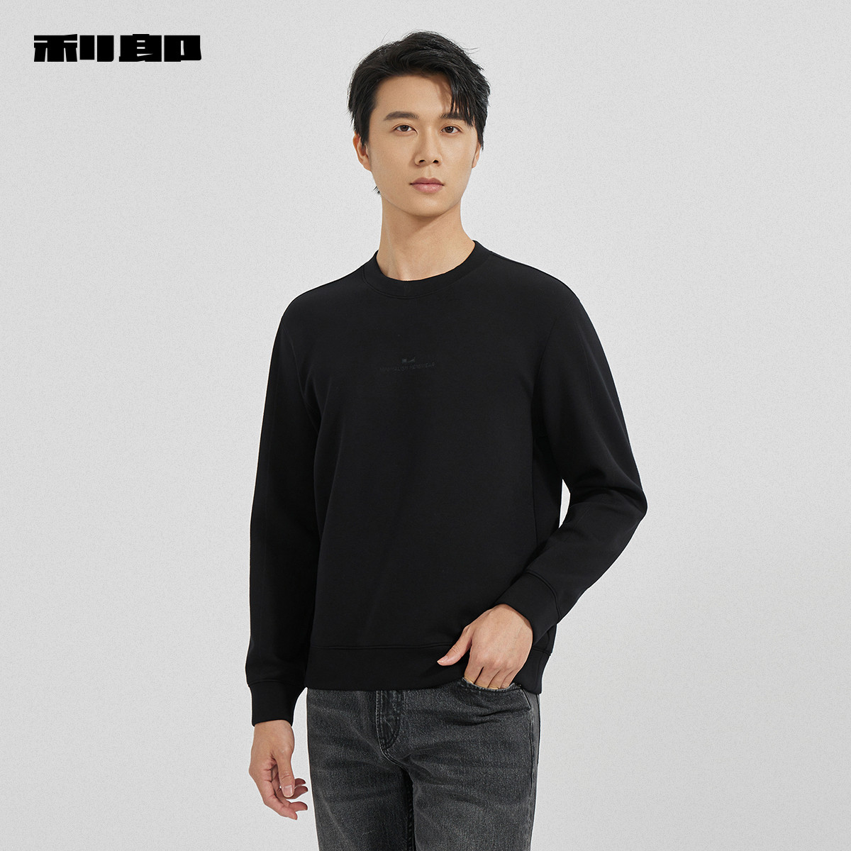 利郎官方绵羊毛圆领印花刺绣卫衣