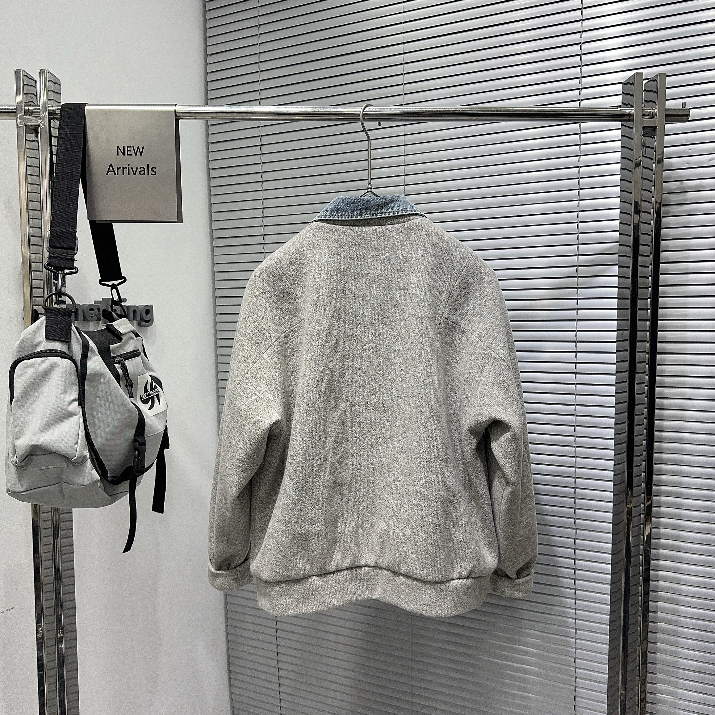 秋冬男拼接假两件牛仔衬衫领开衫羊毛尼潮流时尚青年针织休闲夹克