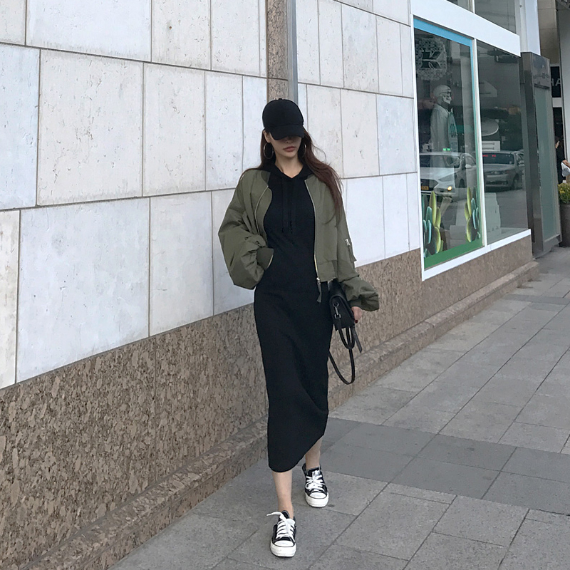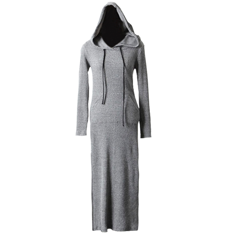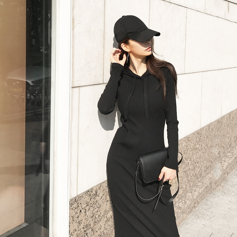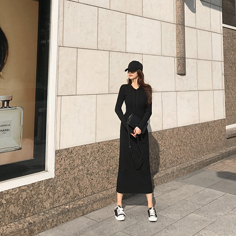 休闲连帽长裙春秋新款韩版长款卫衣女简约连衣裙长袖修身套头显瘦