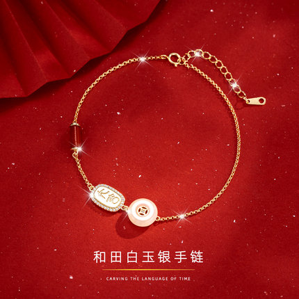 本命年和田玉平安扣银手链女生2025新款潮玉手镯手链轻奢小众精致