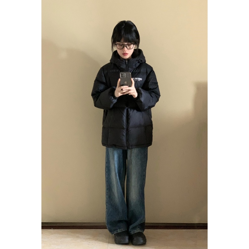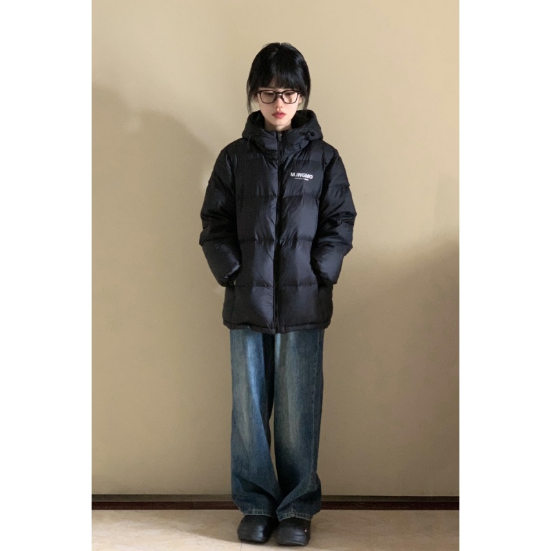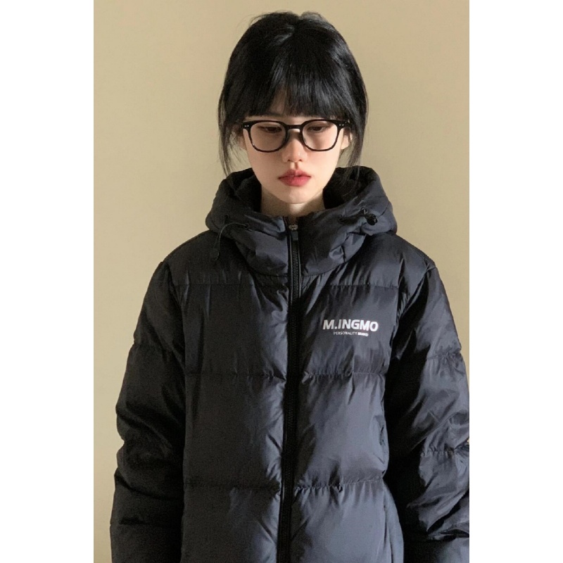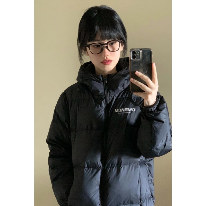 2025美式复古黑色减龄连帽棉服外套女学生新款冬季百搭加厚面包服