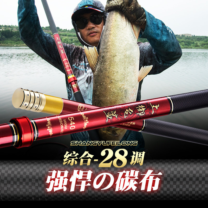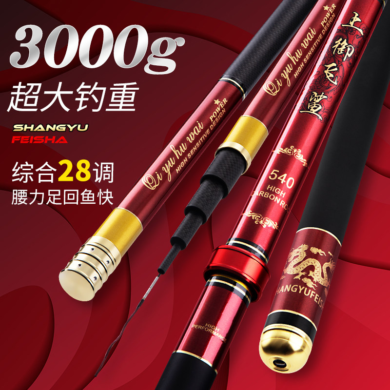新款上御飞鲨碳素钓鱼竿手杆超轻超硬28调19调6H大物杆正品台钓竿