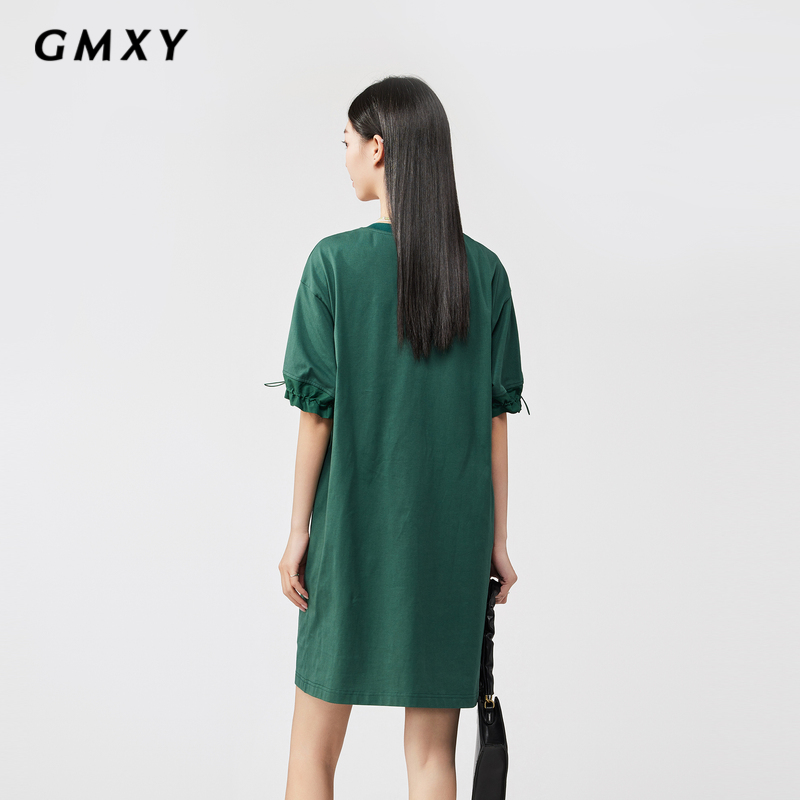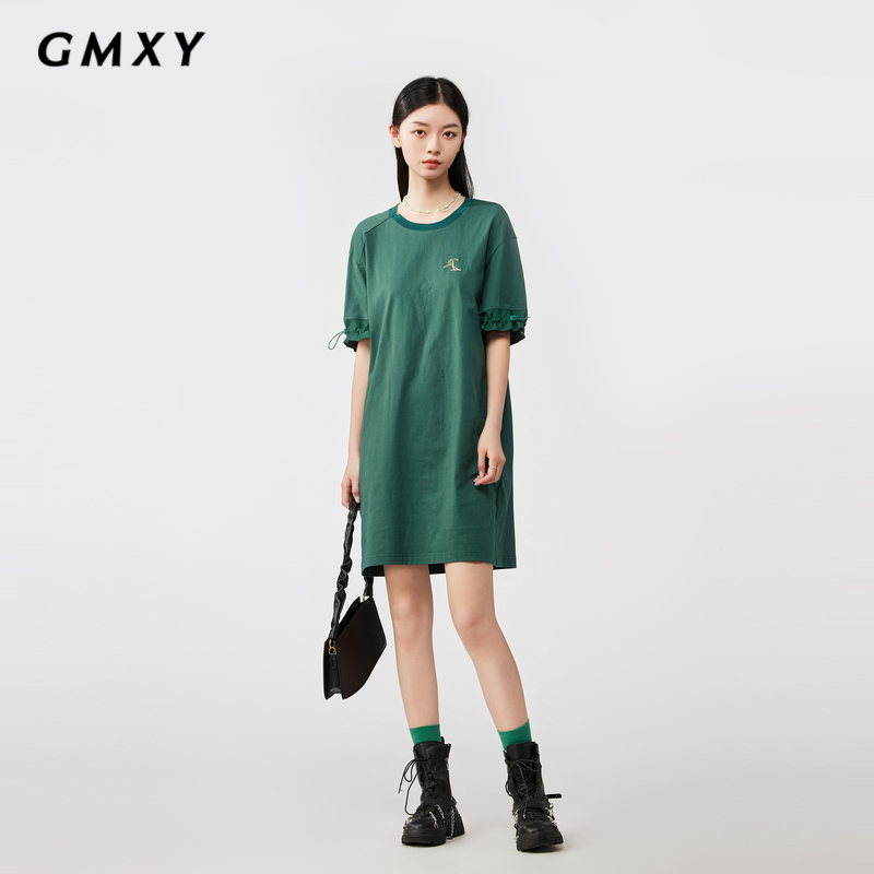 古木夕羊减龄时尚条纹设计T恤连衣裙女夏季简约百搭短袖中长裙
