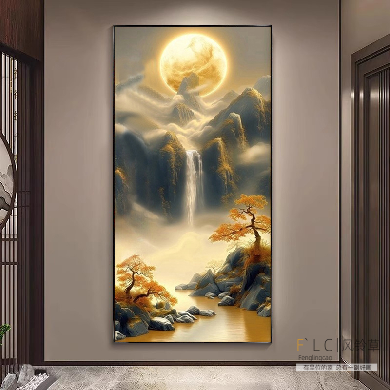 玄关高山流水5d钻石画满钻新款贴钻十字绣钻石绣2025客厅招财风景