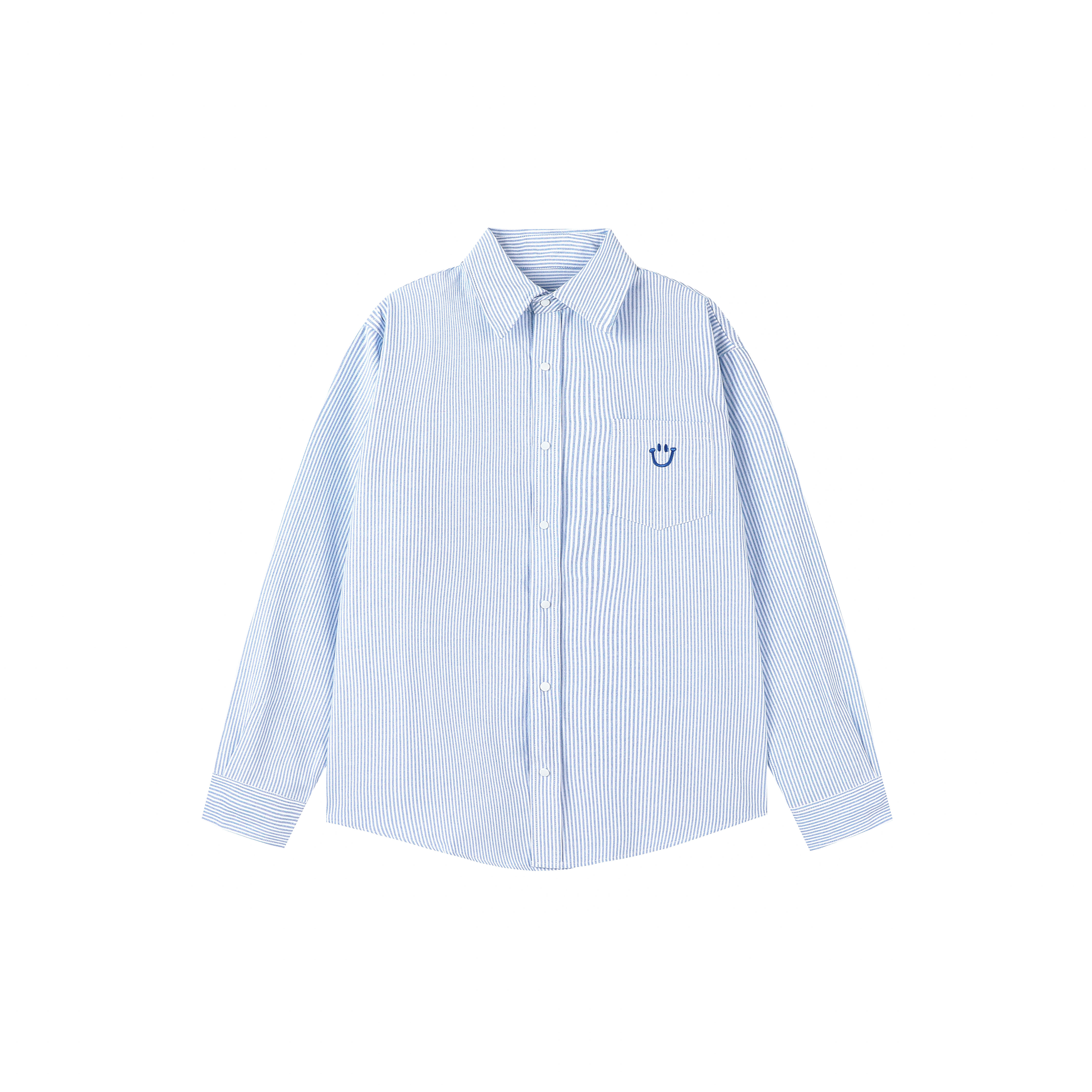 @港仔文艺男 笑脸刺绣衬衫男长袖秋季日系少年感休闲翻领条纹衬衣
