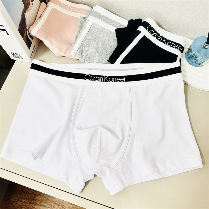 3条极简风潮牌男士平角内裤全棉男生中腰运动纯棉四角裤送男友冬