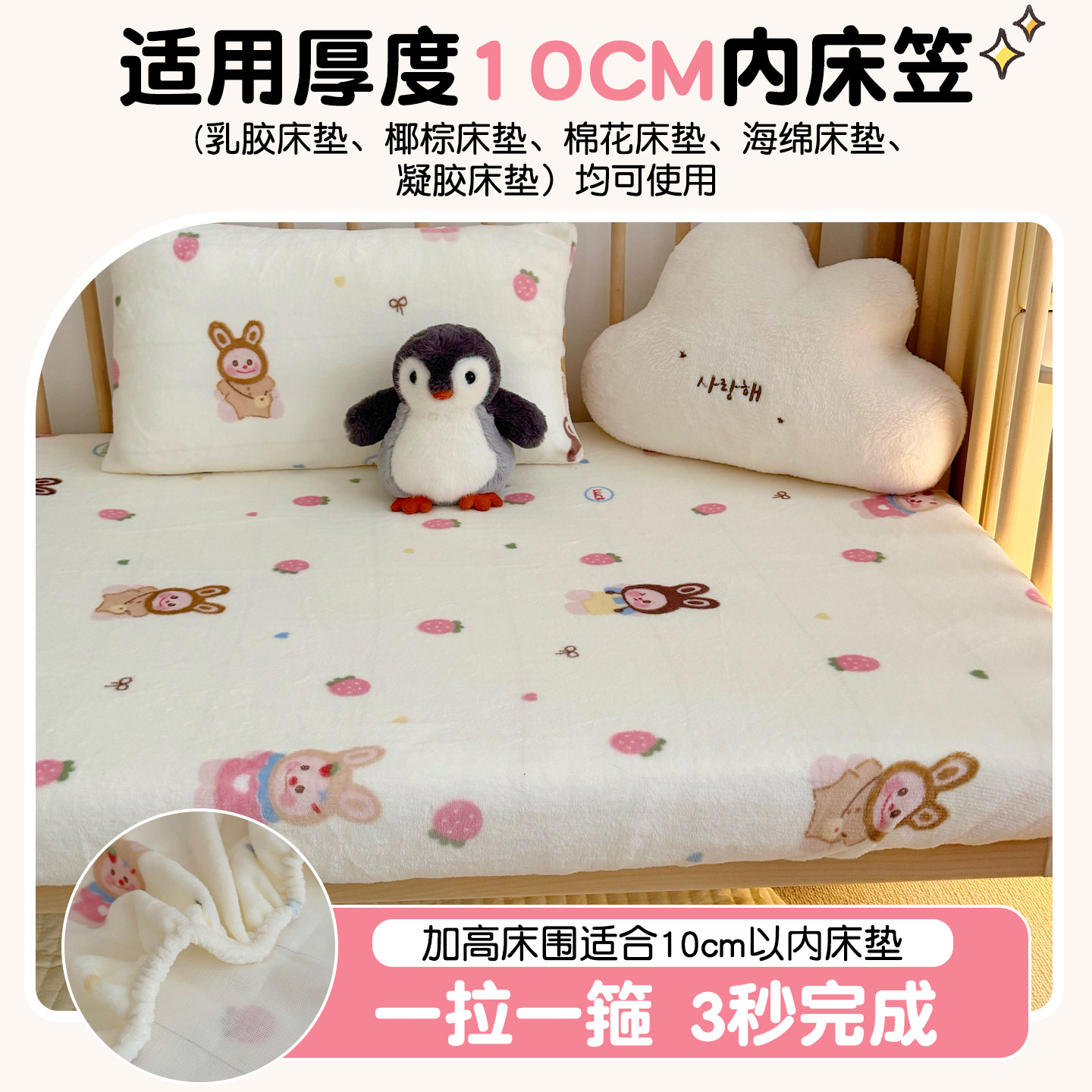 婴儿床床笠秋冬牛奶绒拼接床单儿童新生宝宝珊瑚绒幼儿园床垫套罩