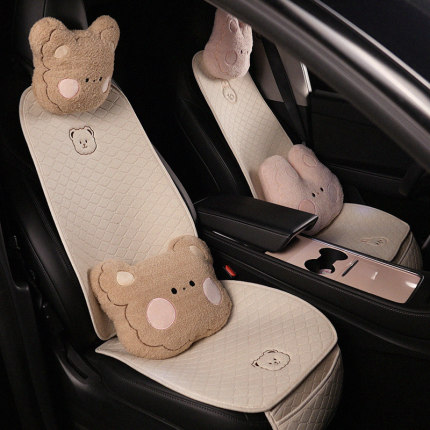 汽车坐垫四季通用亚麻小蛮腰座椅套单片防滑三件套卡通半包座垫