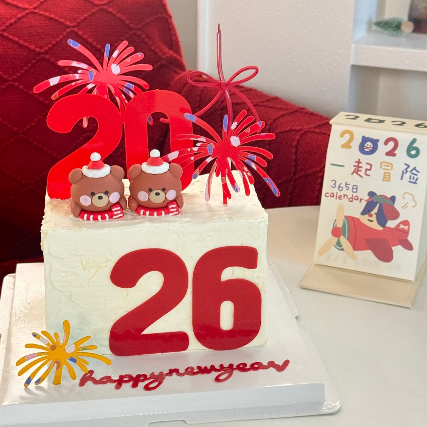 网红新年围巾小熊蛋糕装饰摆件2026礼花亚克力插牌烘焙装扮插件
