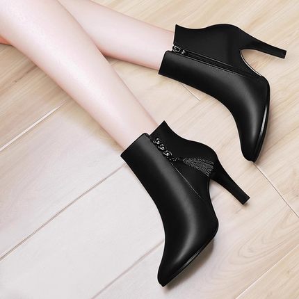 韩版尖头马丁靴女2024冬季新款加绒细跟高跟鞋春大东真皮单里短靴