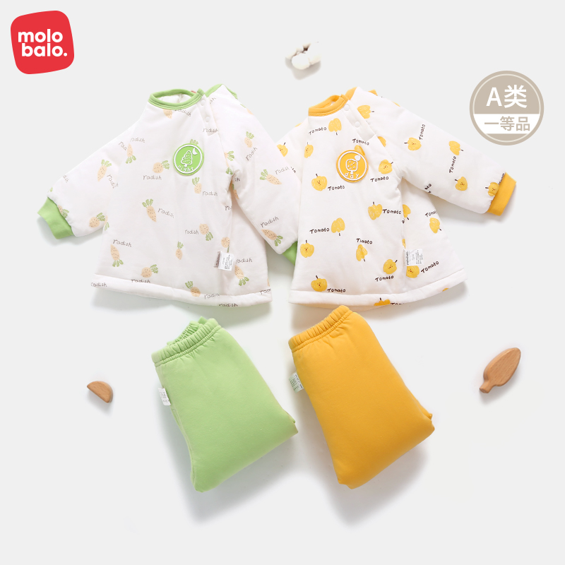 麦拉贝拉婴儿夹棉套装保暖宝宝薄棉一岁幼儿满印分体秋冬睡衣棉衣
