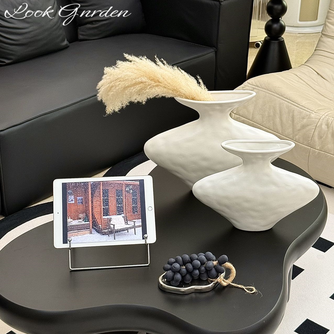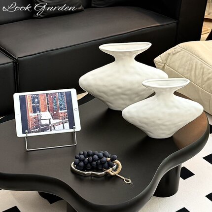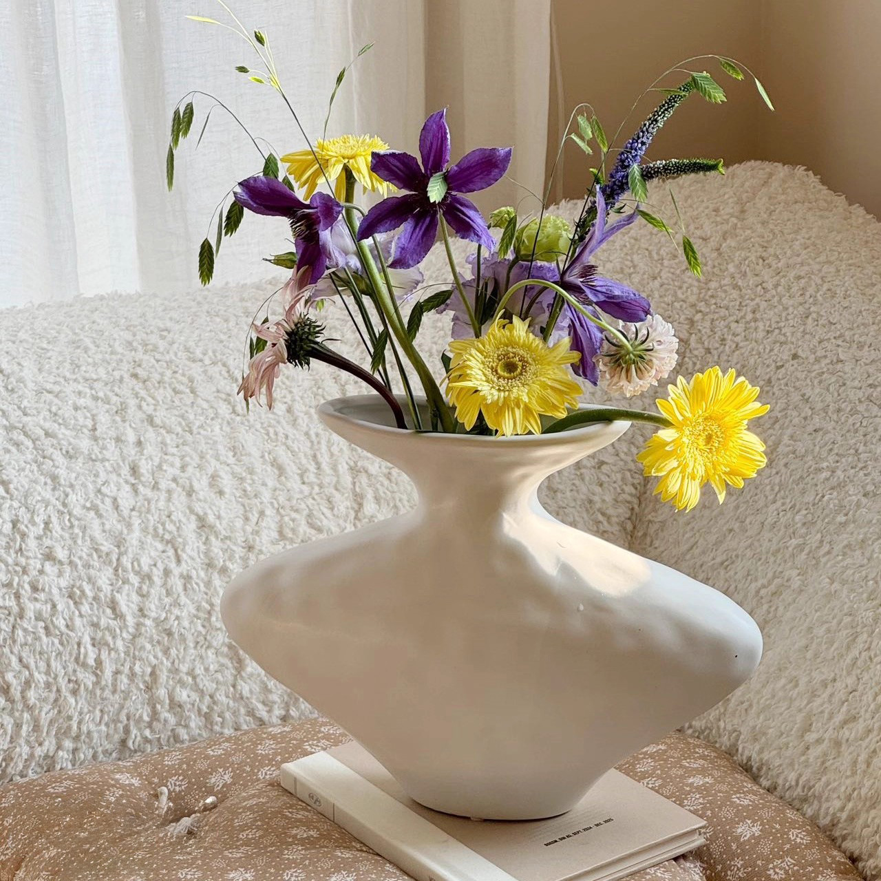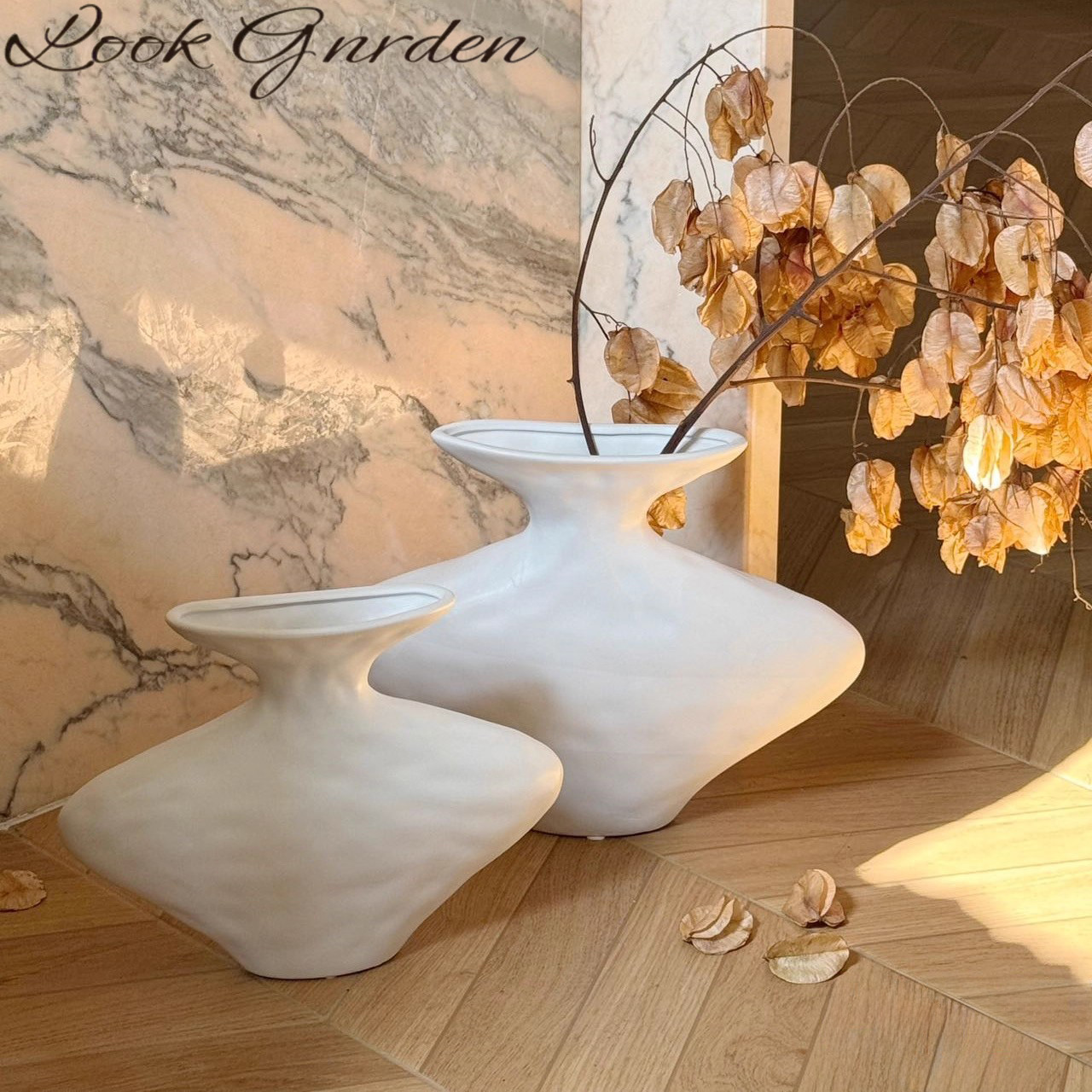 中古风陶瓷花瓶高级轻奢水培鲜花侘寂风白色花器家居客厅桌面摆件