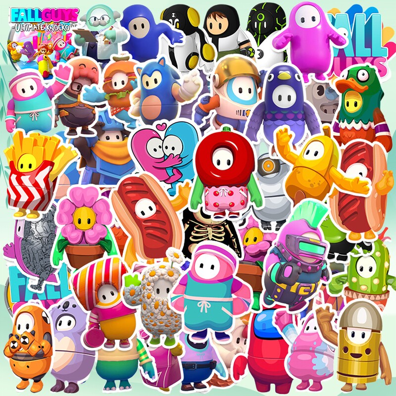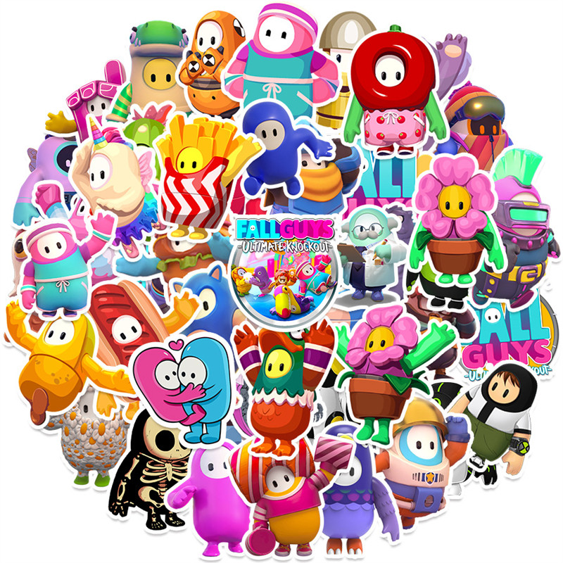 50张热门游戏糖豆人卡通动画贴纸装饰手机壳笔记本电脑ipad桌面水杯行李箱收纳盒充电宝桌面墙面防水贴纸