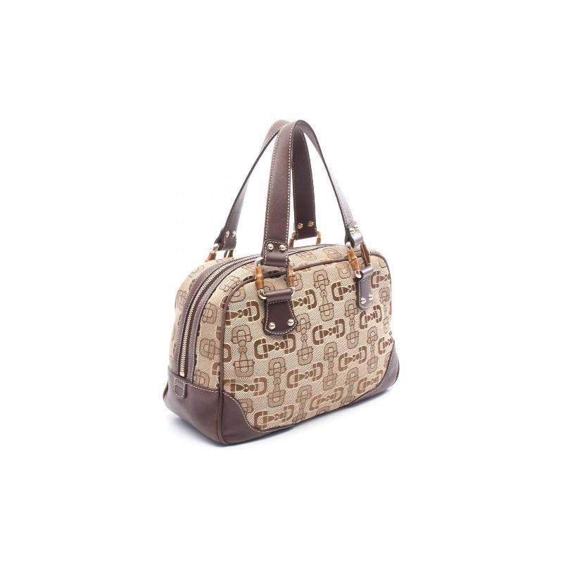 中古Gucci古驰女包B级9新Horsebit马衔扣帆布手提包浅褐色正品