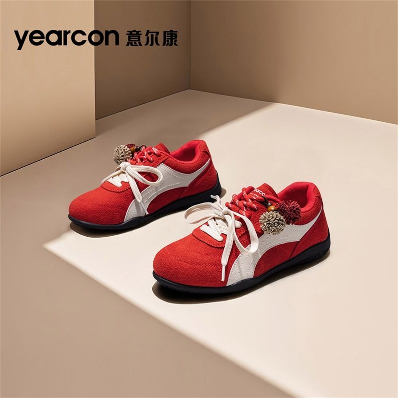 意尔康女鞋秋冬季2025新款红色厚底休闲运动鞋绝美不累脚新娘婚鞋