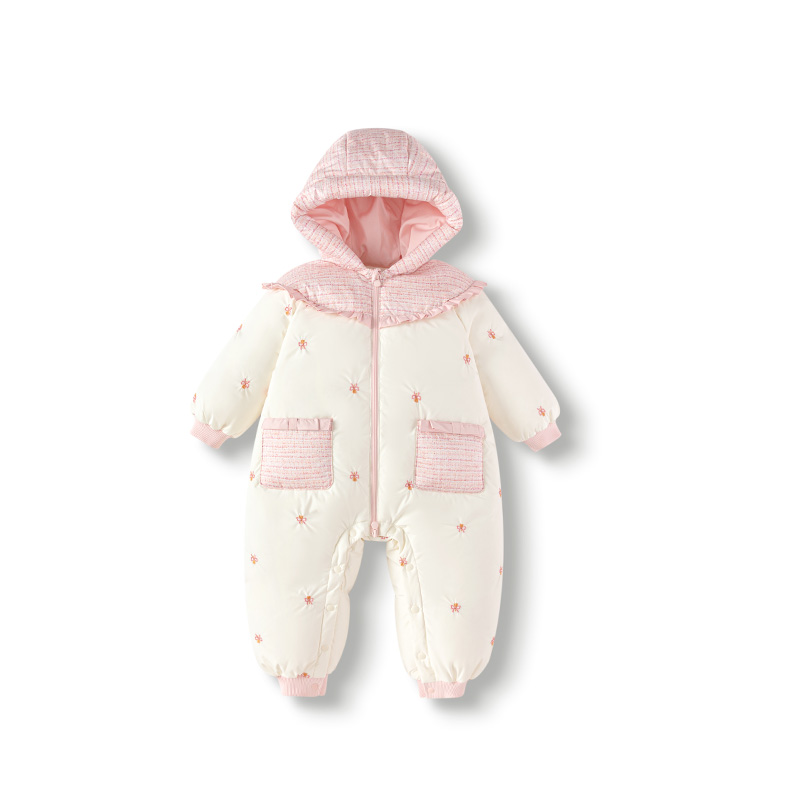 巴拉巴拉婴儿羽绒服连体衣女童加厚外出抱衣2025冬装新款连帽爬服