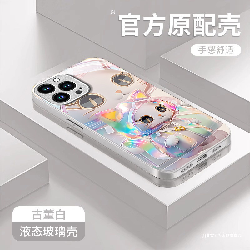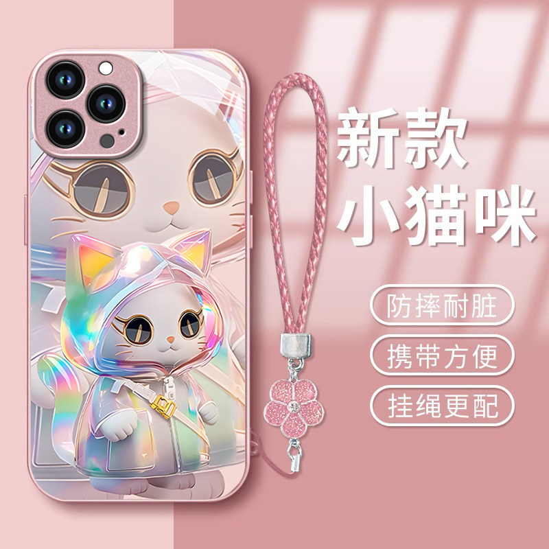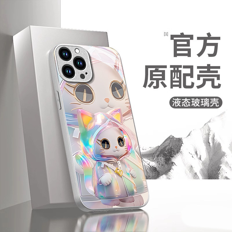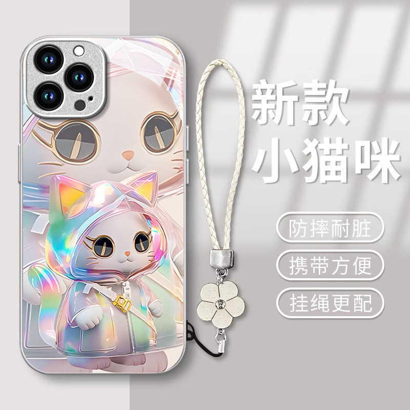 适用苹果16promax手机壳15pro新款14可爱13mini玻璃12/11全包8时尚7plus镭射猫咪6splus女款xr防摔xs外壳se3
