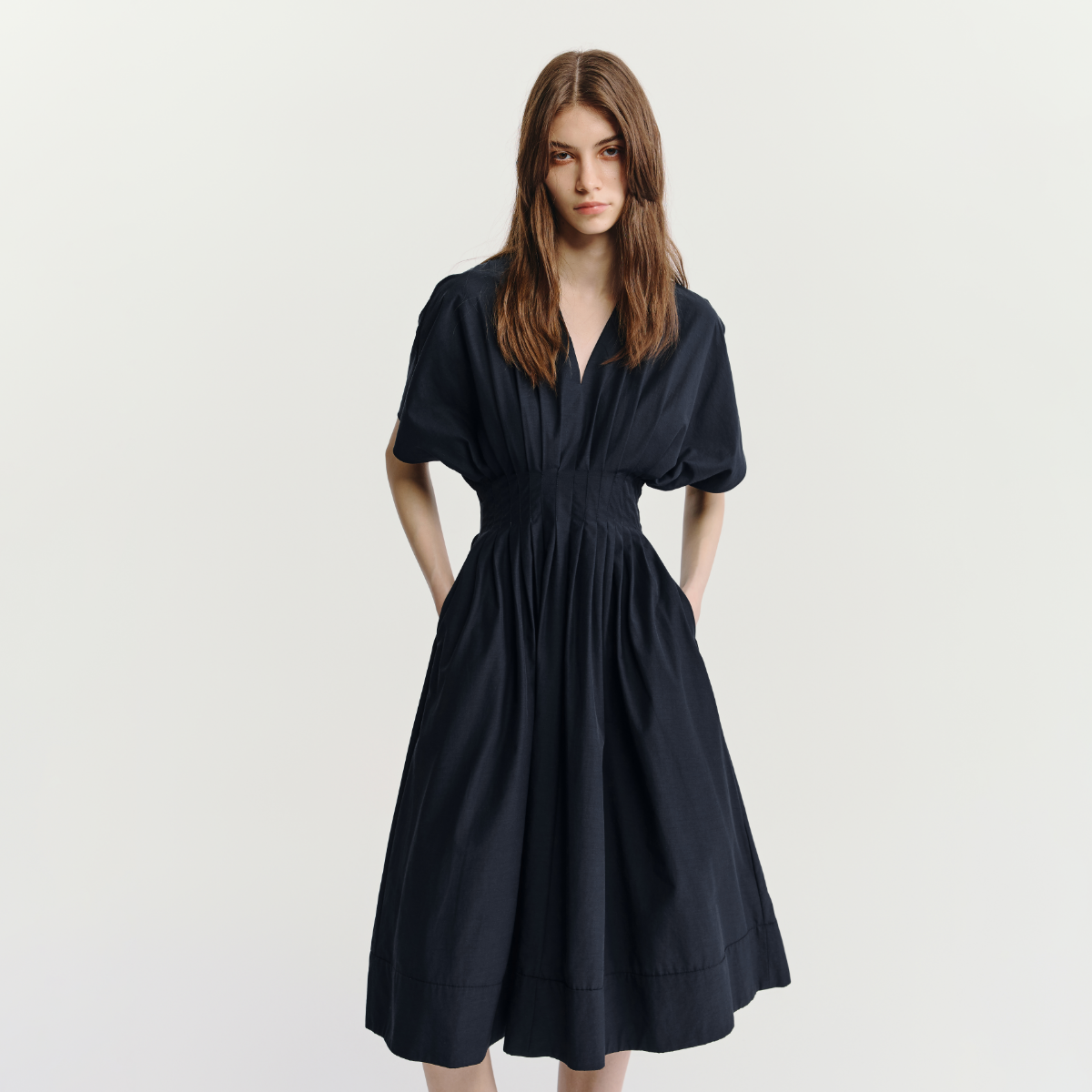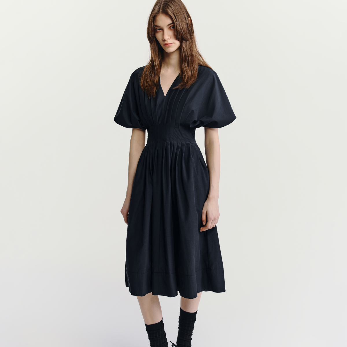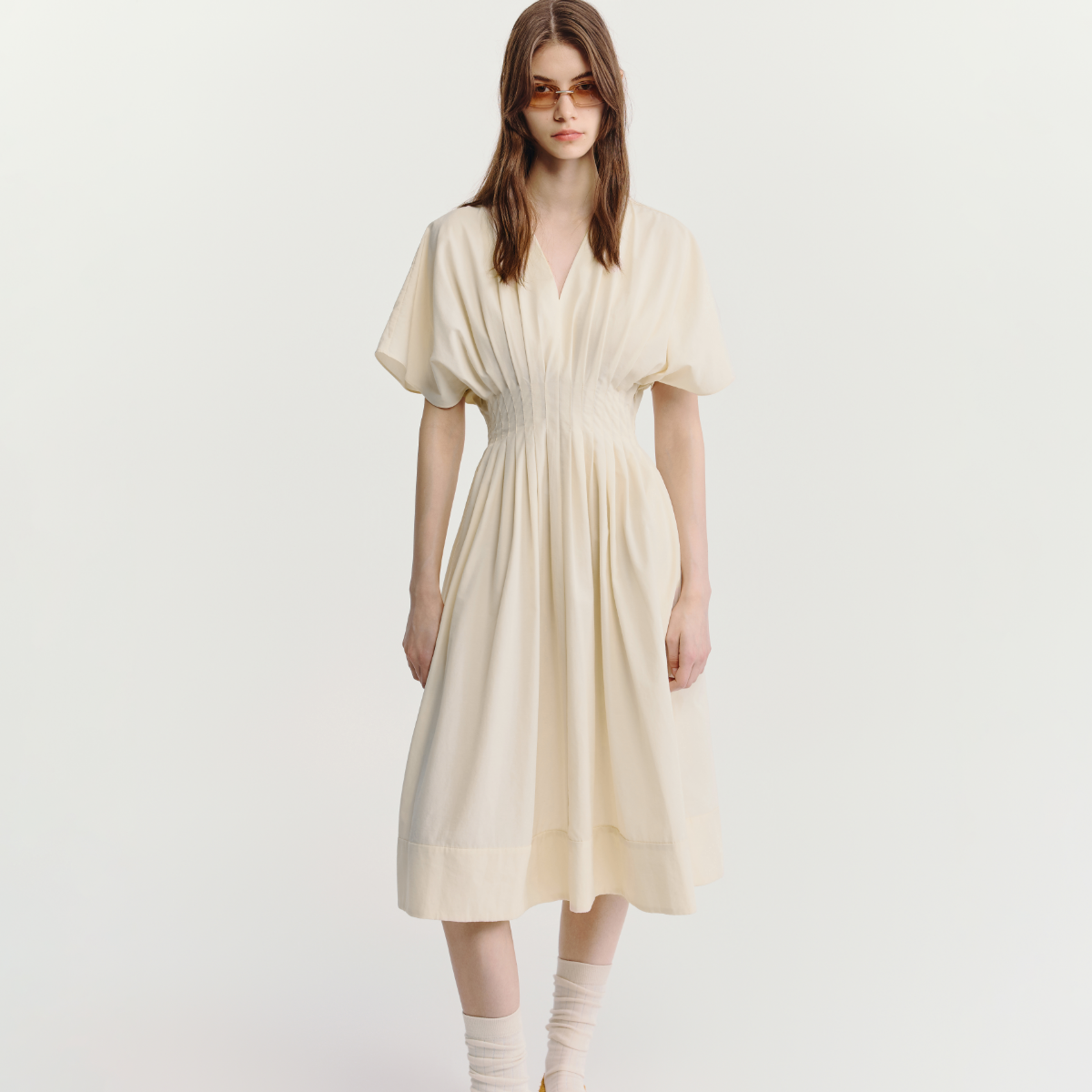 HAVVA法式气质V领A字收腰显瘦短袖连衣裙女士裙子2025夏季Q3-3690