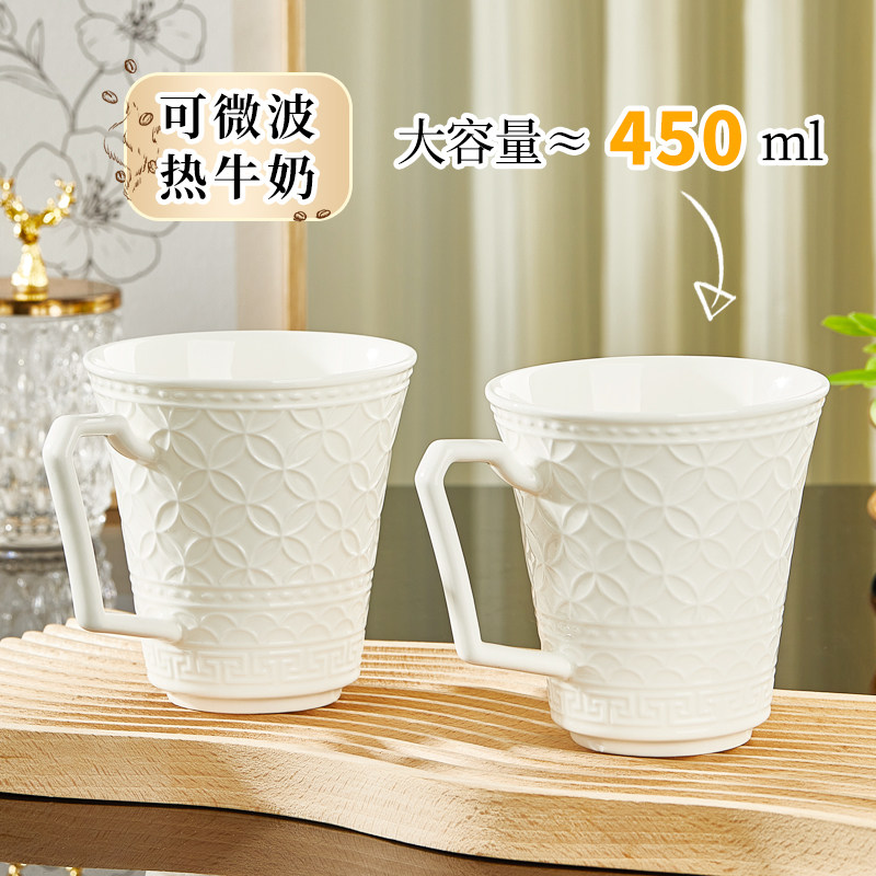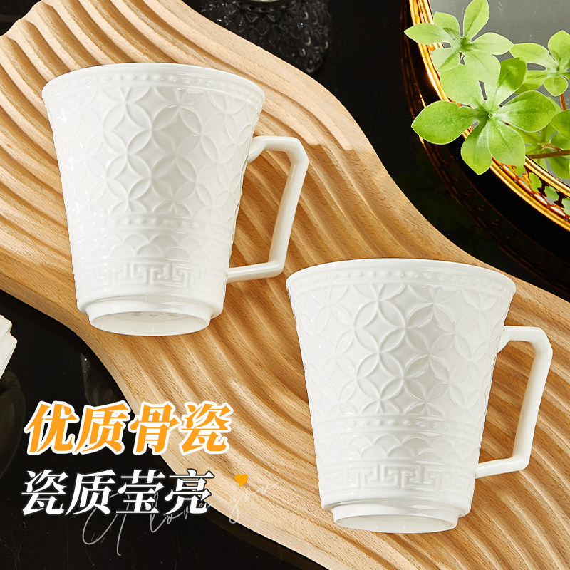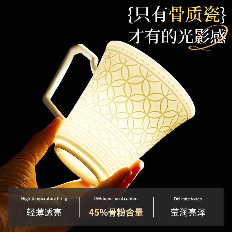 唐山骨瓷马克杯女士办公室喝水杯轻奢高颜值陶瓷可微波牛奶杯家用