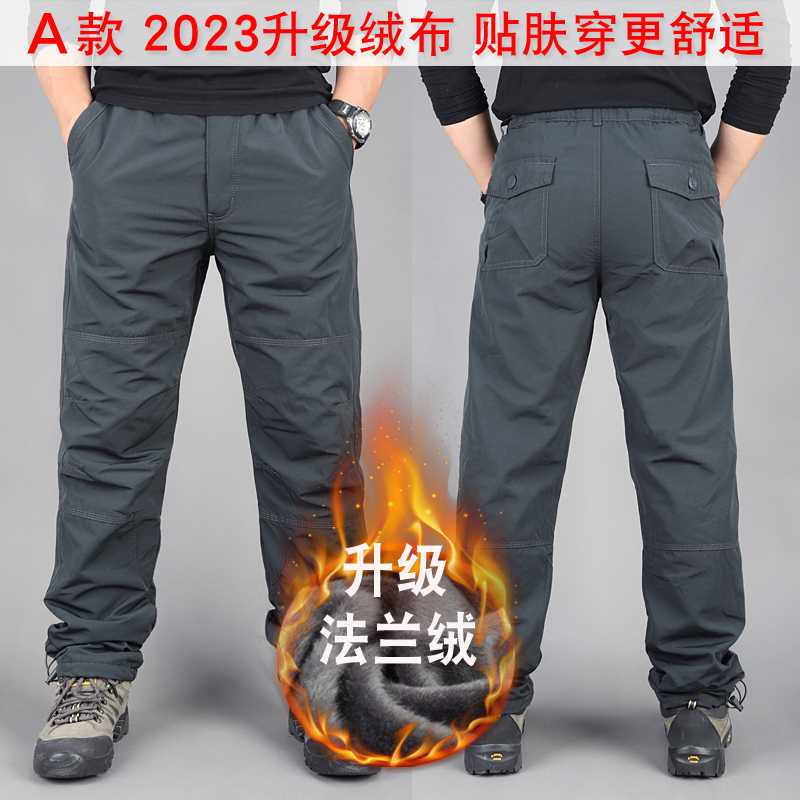 冬季加绒工装裤男宽松加厚潮牌大码直筒多口袋保暖户外运动休闲裤