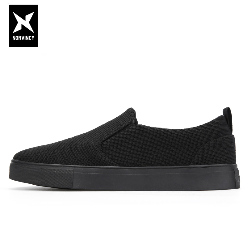 诺凡希^春夏潮男女透气纯色百搭一脚蹬鞋子懒人帆布鞋简约小黑鞋