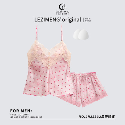 乐姿梦睡衣女夏季冰丝凉感居家服轻奢薄款性感带胸垫吊带短裤套装