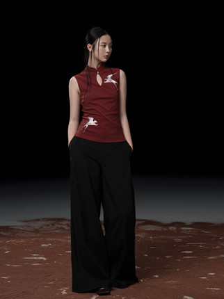 乌合衣作 2024夏季新中式国风燕子刺绣立领无袖设计感上衣