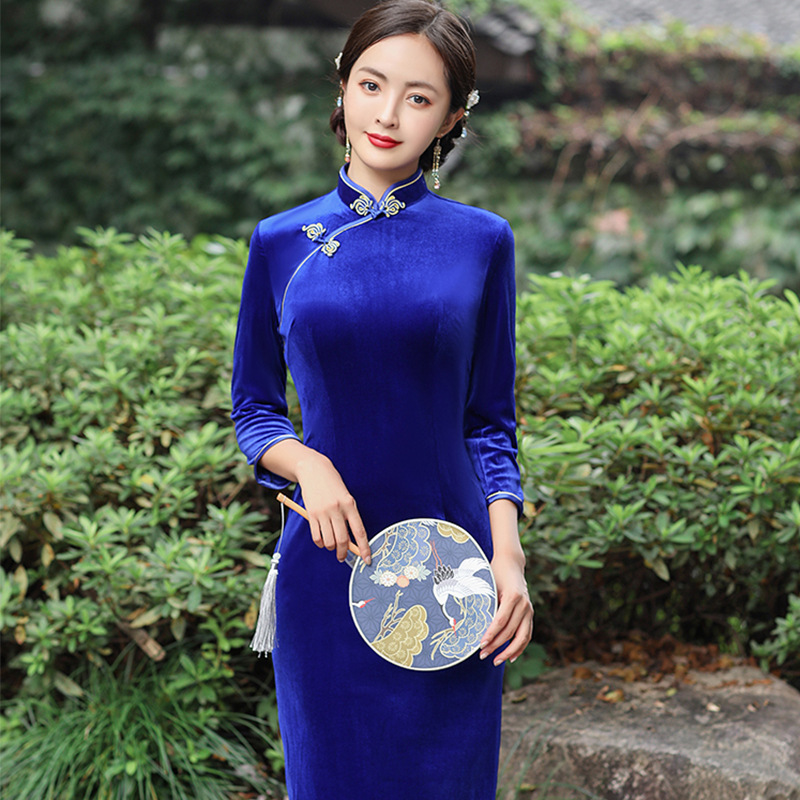 旗袍大码婚宴装改良纯色演出显瘦时尚长款气质礼服高端连衣裙妈妈
