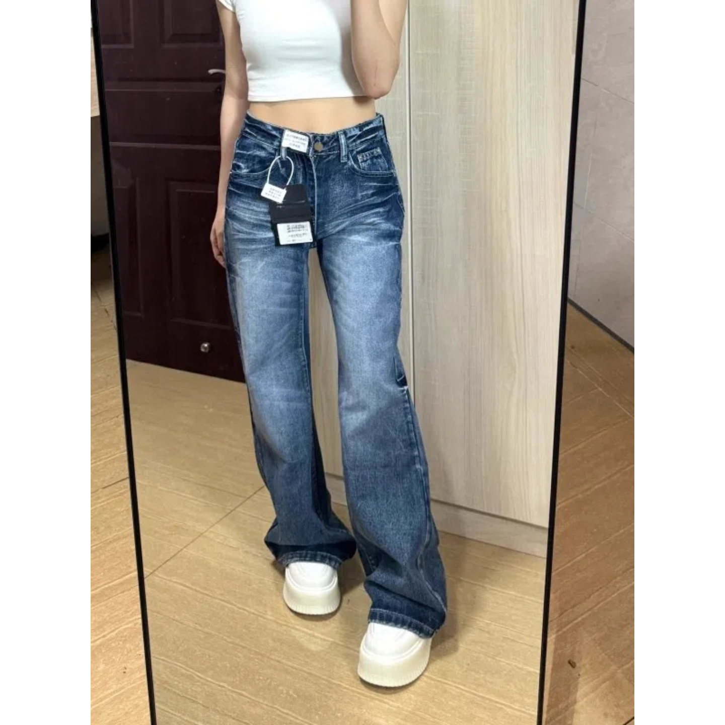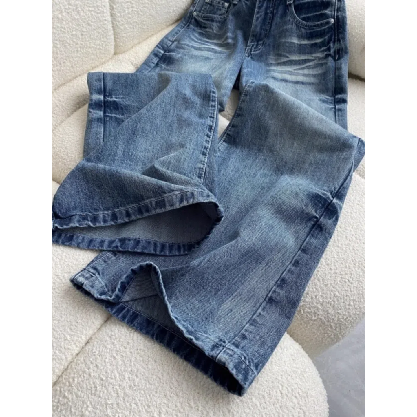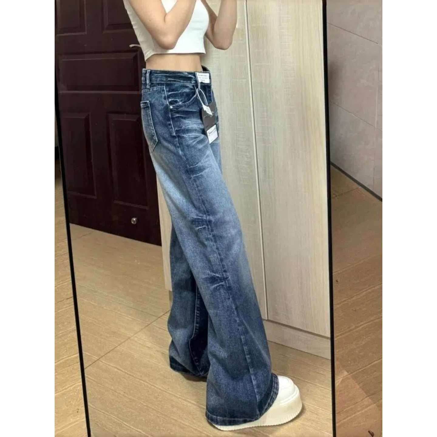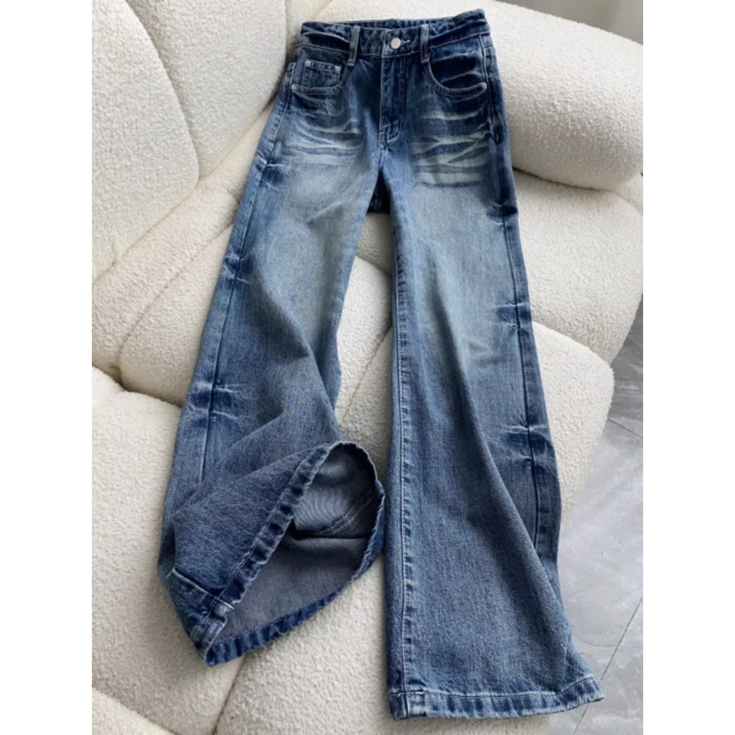 复古微喇牛仔裤女韩版ins2025新款美式高街高腰宽松阔腿喇叭裤子