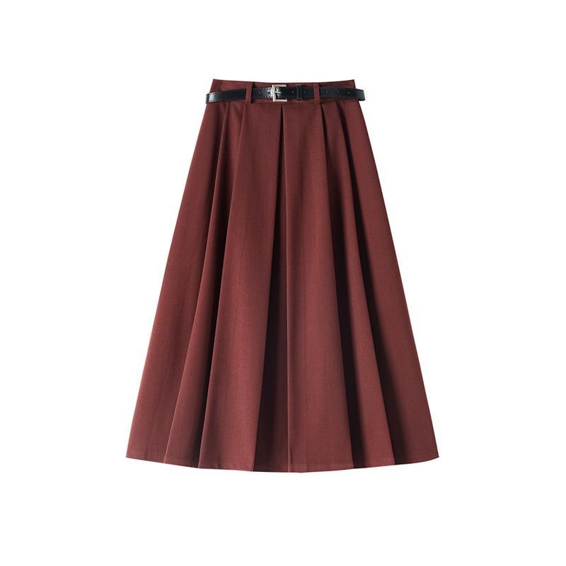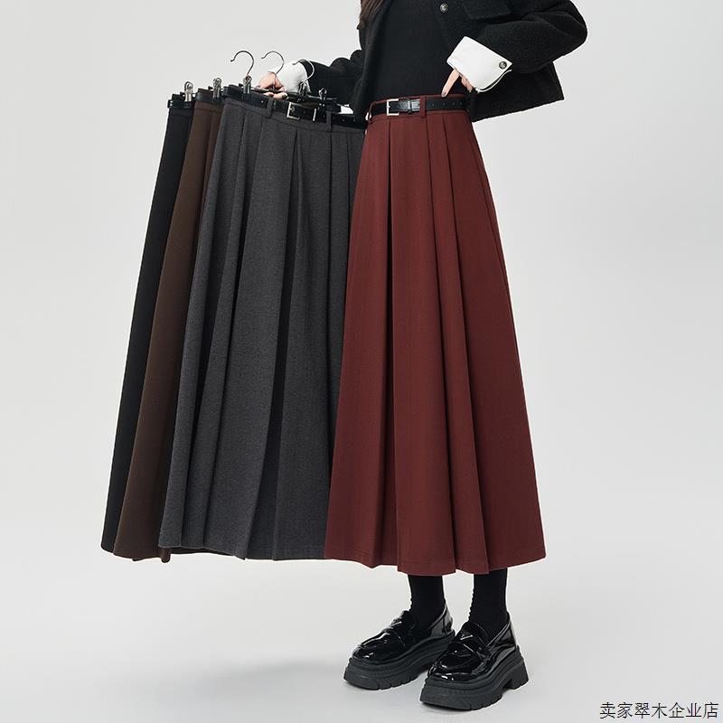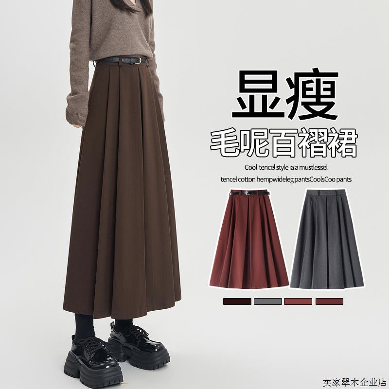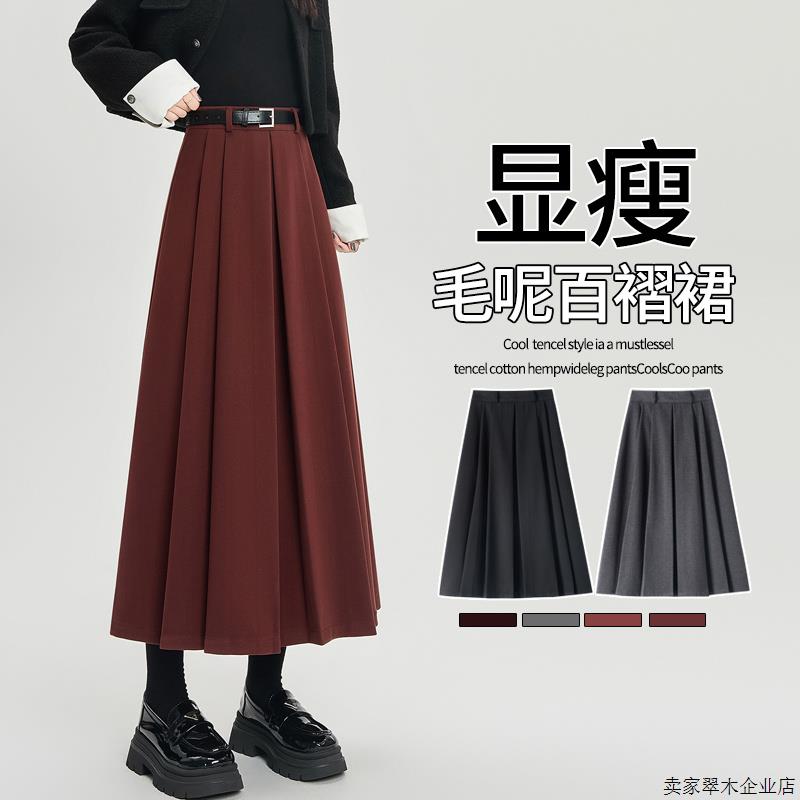高腰毛呢百褶裙女遮胯2025秋冬新款百搭显瘦a字半身裙垂感中长裙