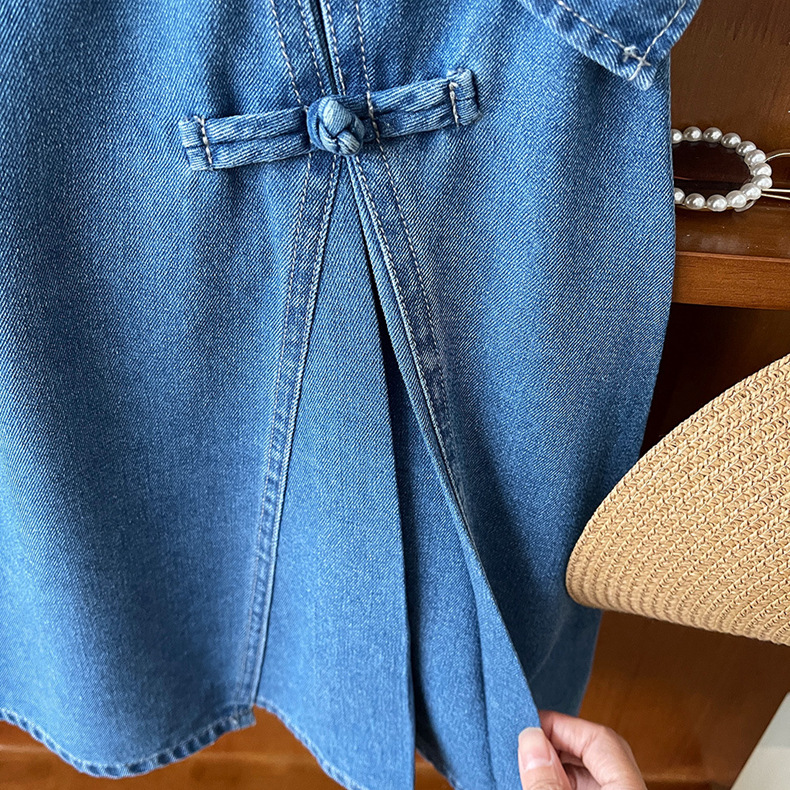 夏女童新中式无袖薄款牛仔连衣裙