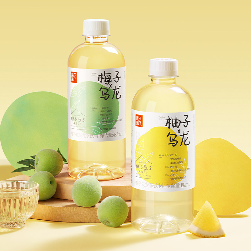 果子熟了混合口味(柚子+梅子+夏黑葡萄)果汁茶饮料487mL*9瓶整箱