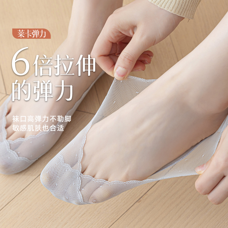 夏季薄款隐形袜子女纯棉不掉跟防滑脱浅口单鞋蕾丝花边船袜底全棉