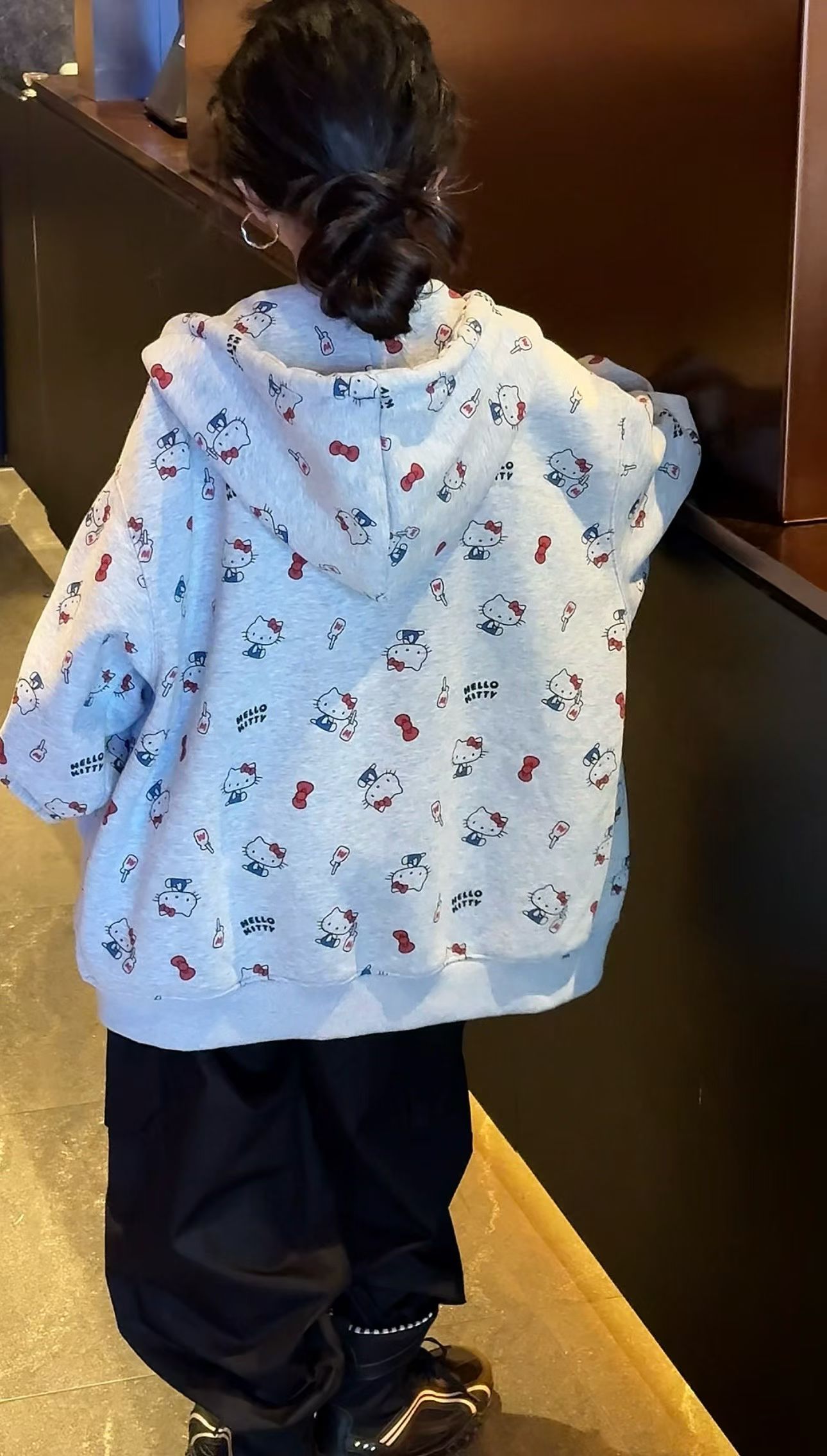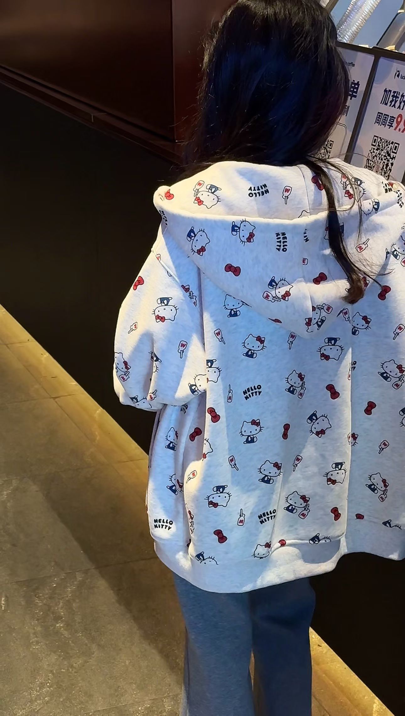 由里秋冬加绒外套女童大童连帽卫衣外套休闲宽松卡通Kitty猫上衣