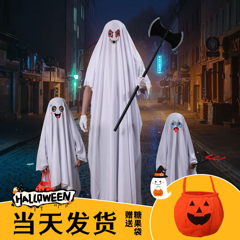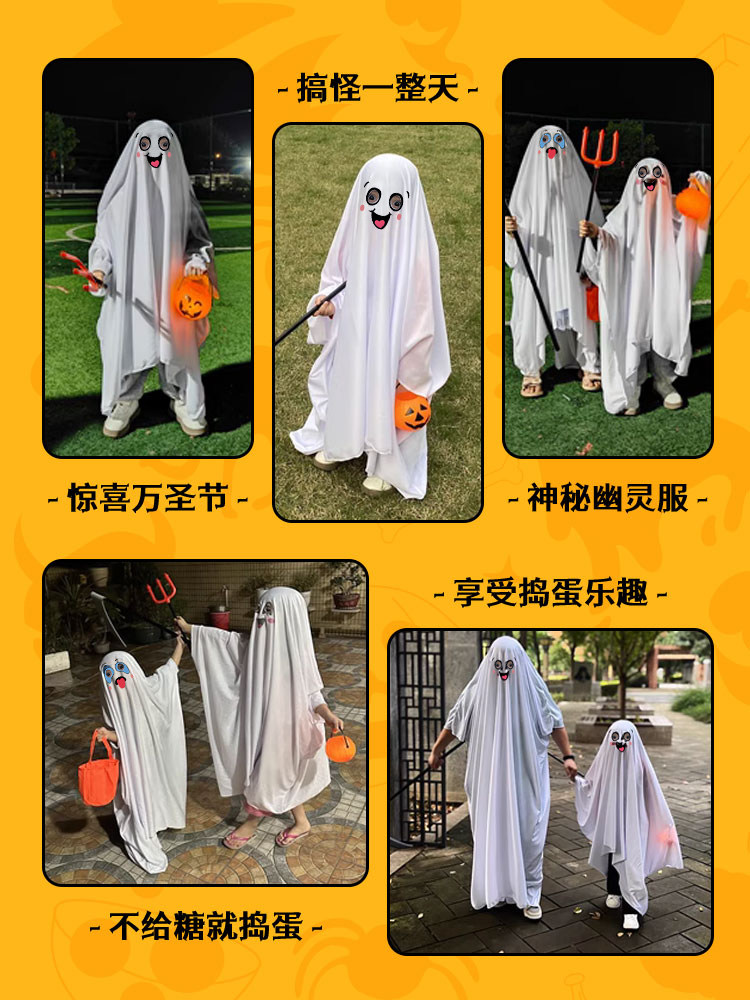 万圣节儿童服装男童女孩白色幽灵斗篷披风服饰cos幼儿园扮鬼装扮