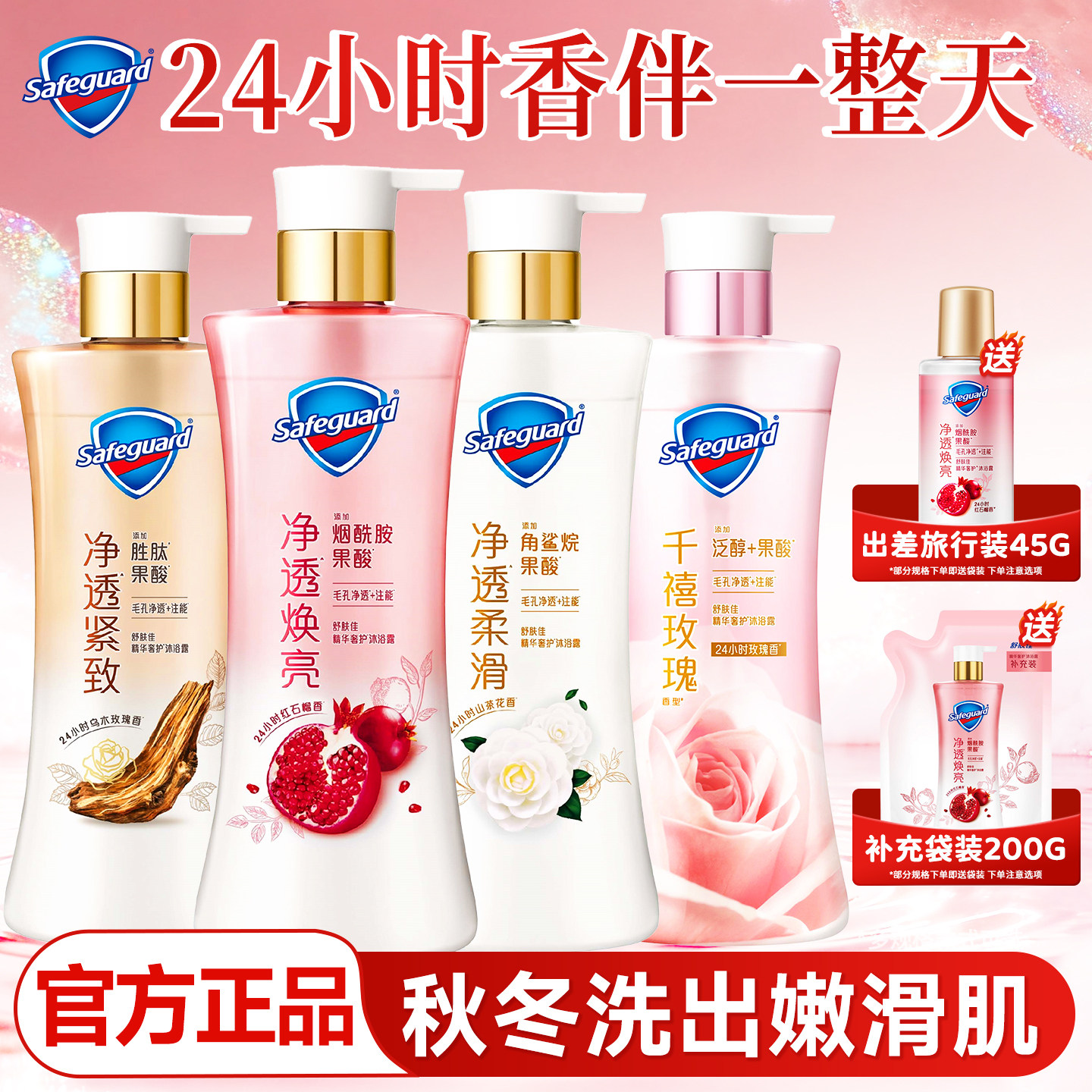【新升级】舒肤佳净透沐浴露红石榴山茶花乌木玫瑰持久留香沐浴乳