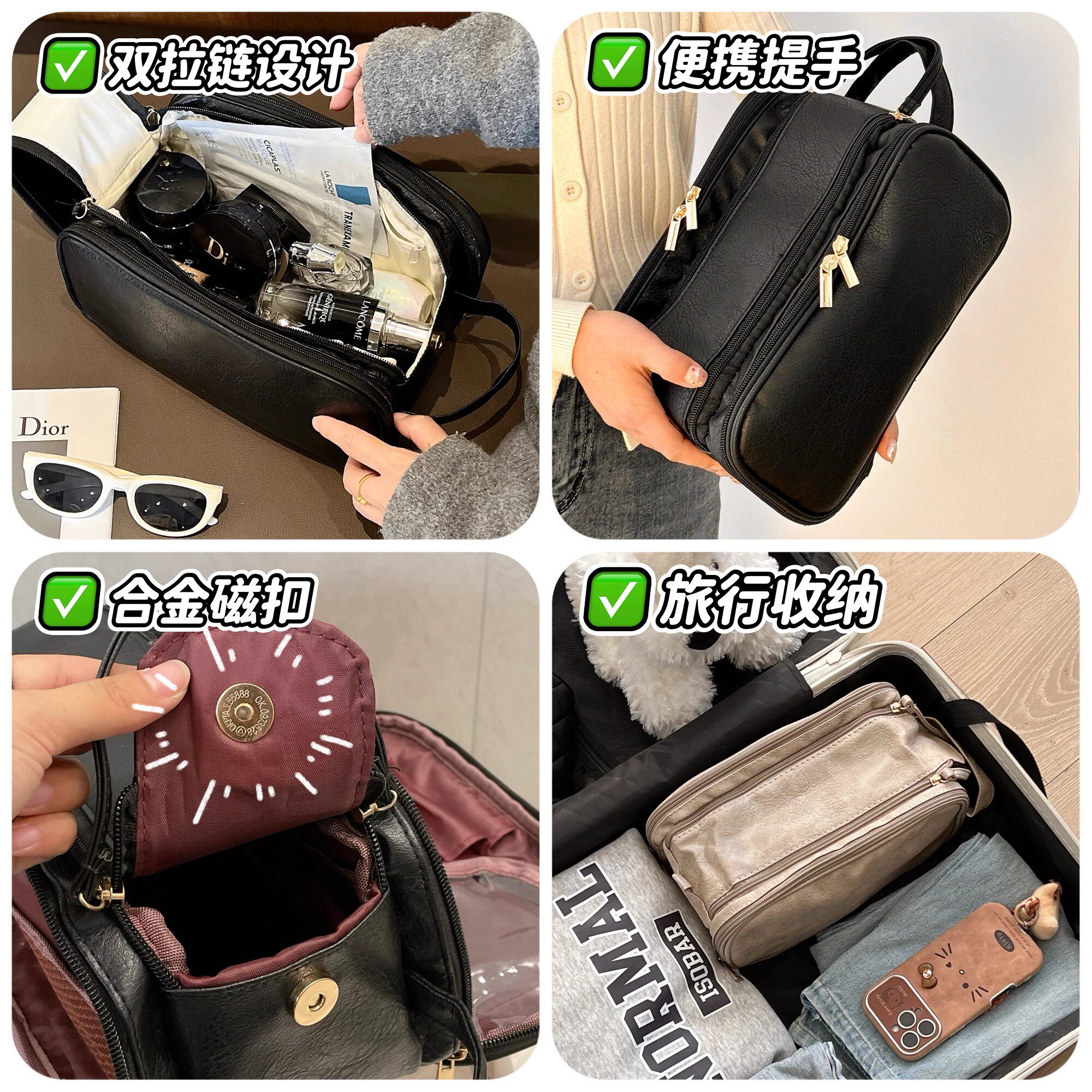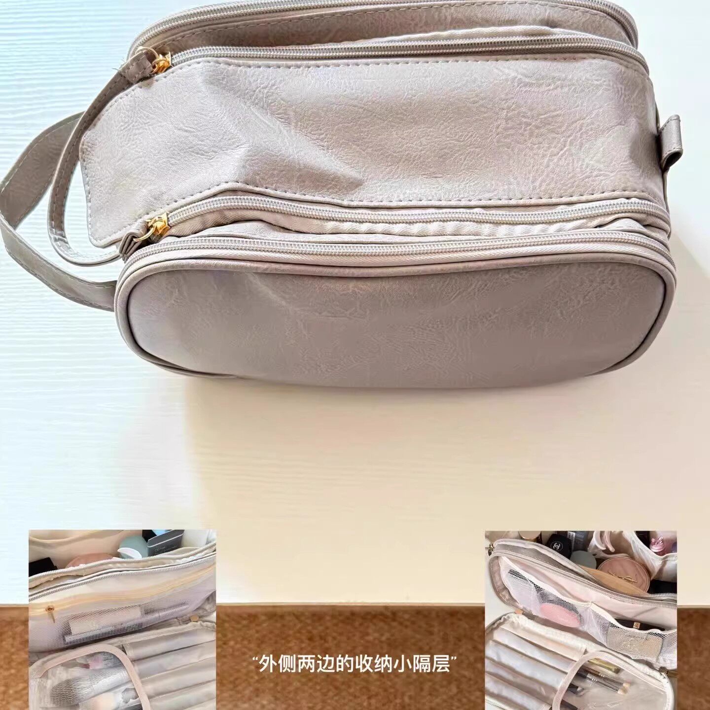 巨能装!双拉链分区大容量化妆包便携旅行荔枝纹洗漱包收纳袋高级