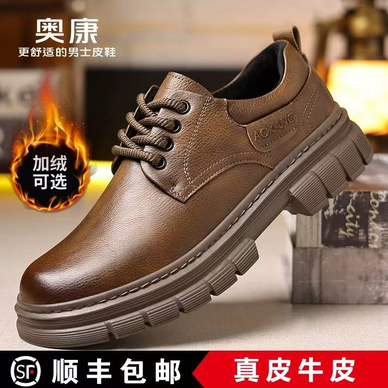 奥康正品2025新款男士真皮商务休闲皮鞋马丁靴工装鞋防滑耐磨软底
