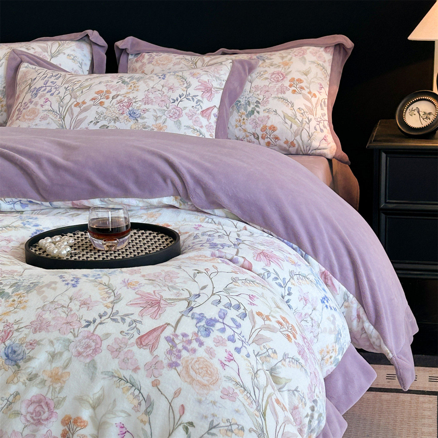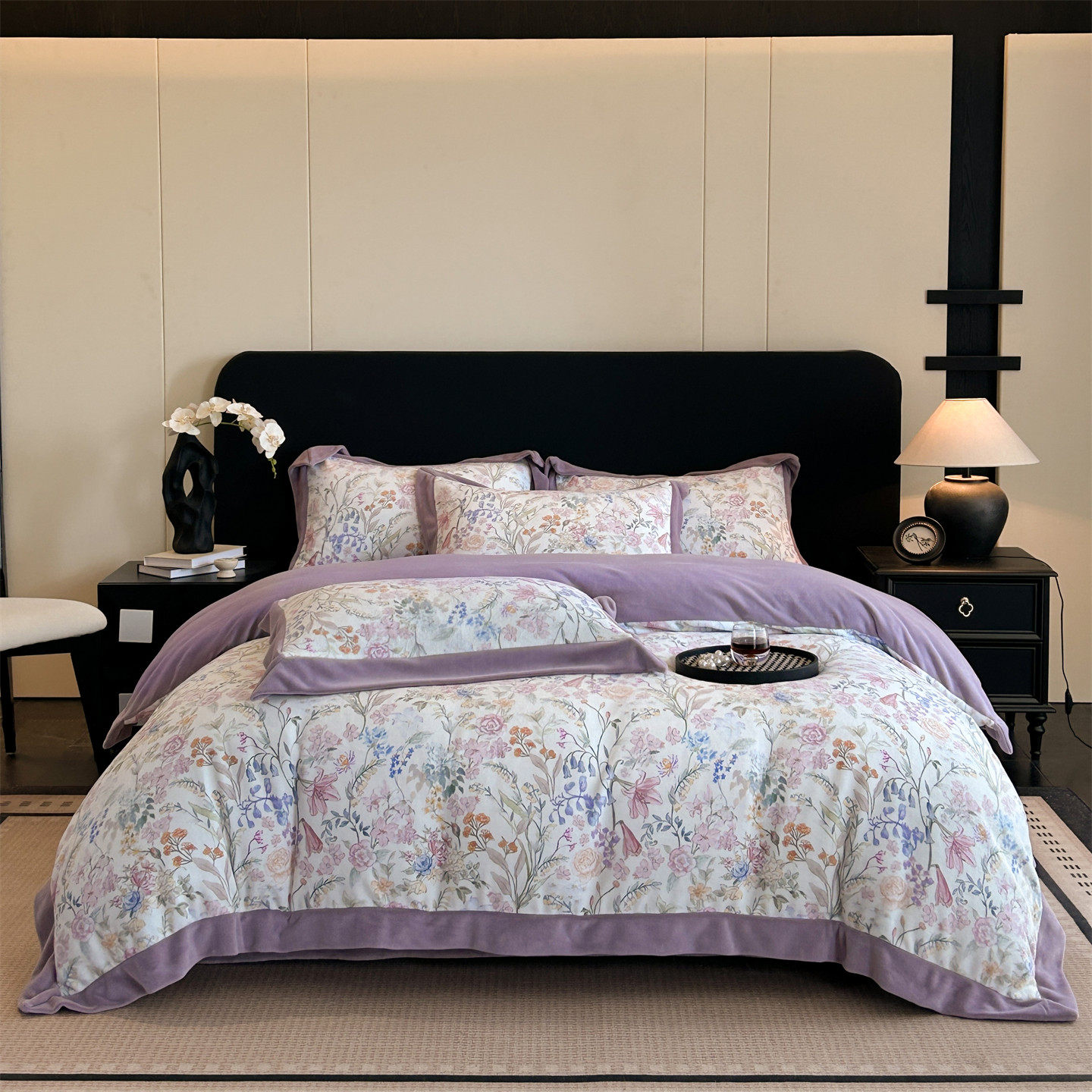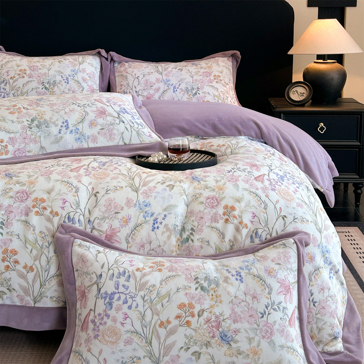 保暖加厚法式数码印花宽边牛奶绒四件套冬季珊瑚绒短毛绒床上用品