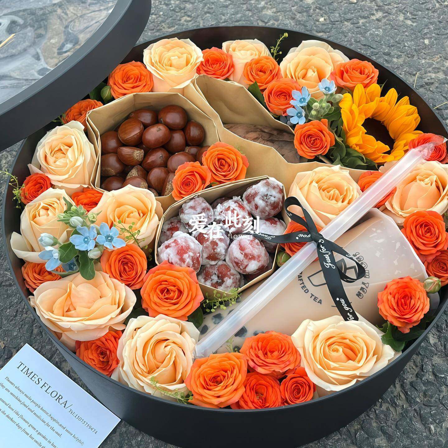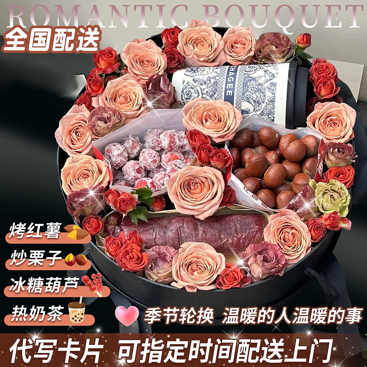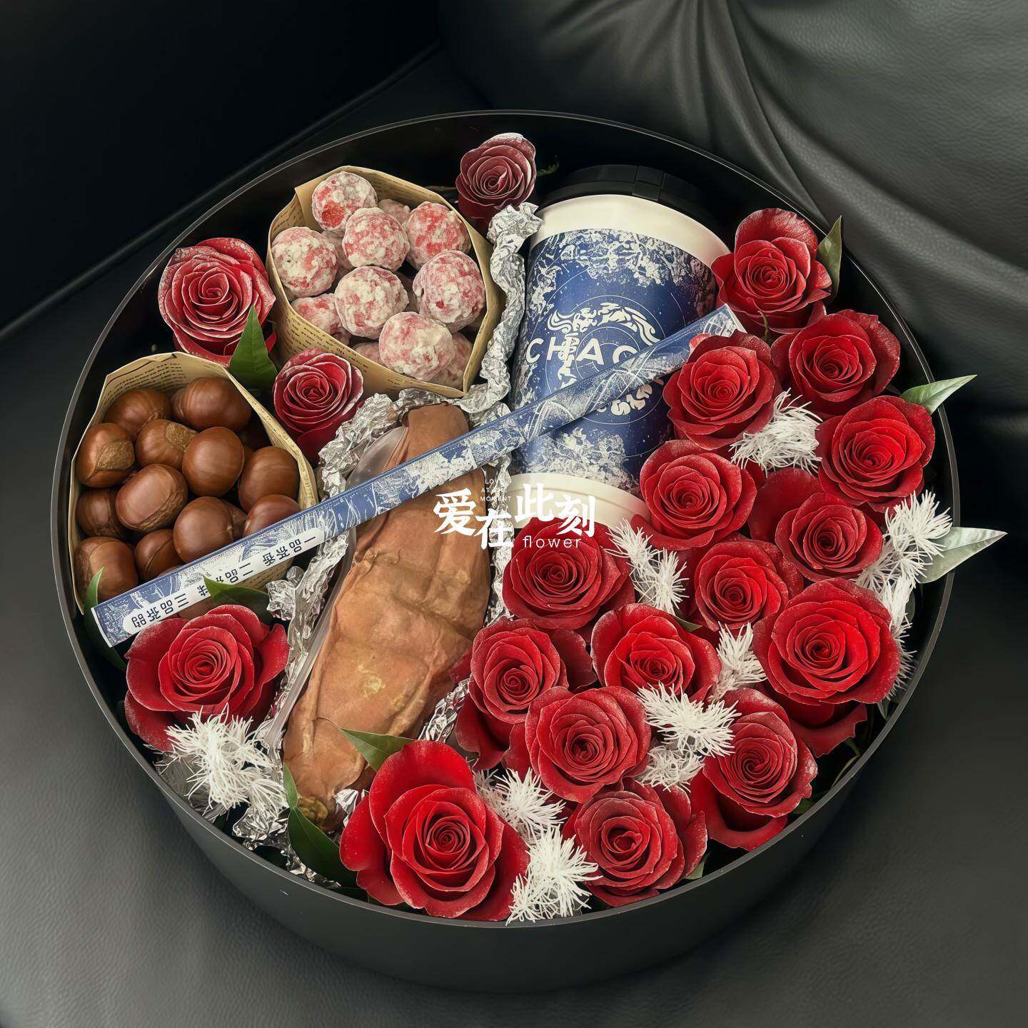 圣诞节立冬入冬四件套礼盒鲜花速递同城配送奶茶红薯板栗零食花束