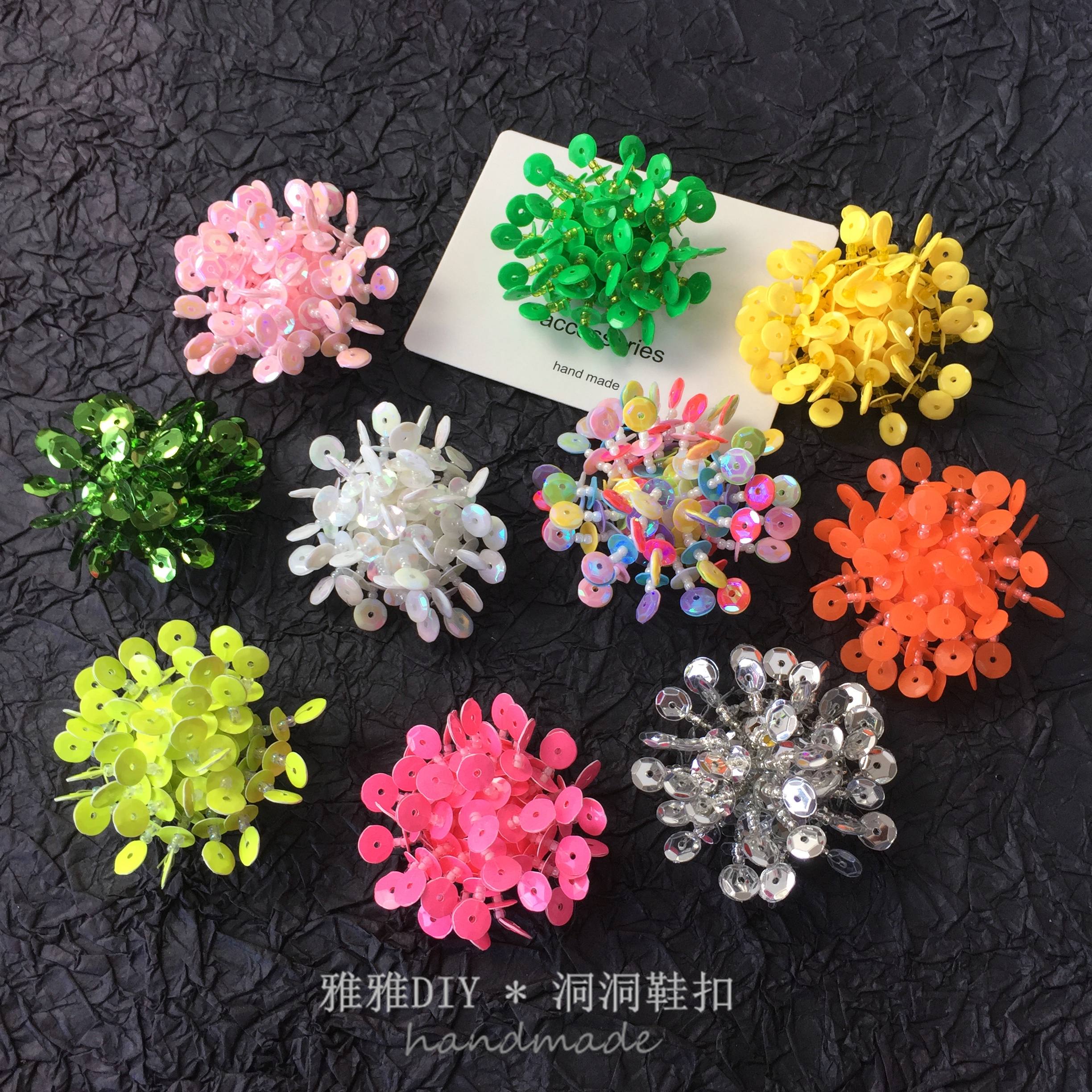 彩色亮片花朵鞋扣crocs洞洞鞋diy配饰果冻拖鞋个性装饰鞋花可拆卸