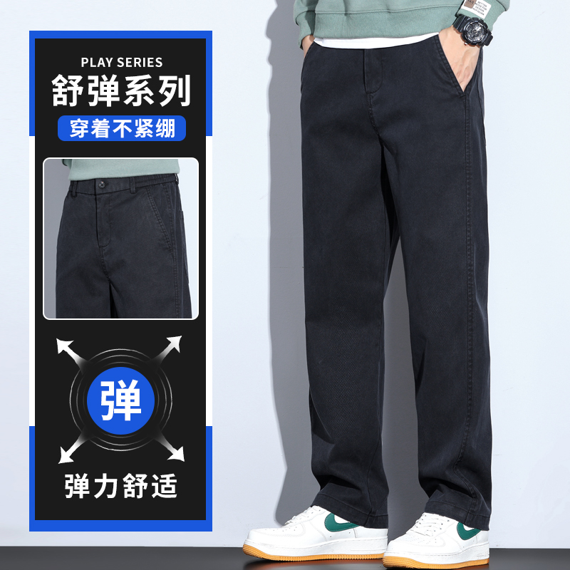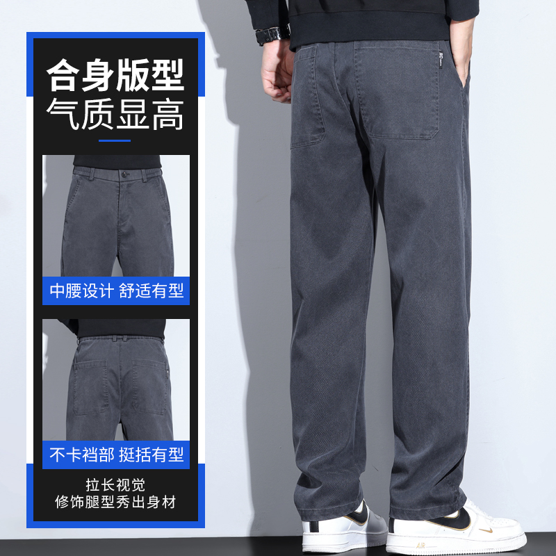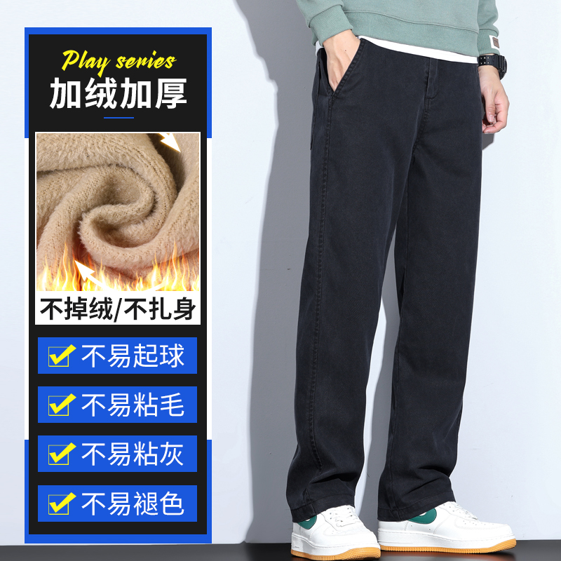 罗蒙阔腿休闲裤男士潮牌高街宽松直筒运动工装长裤子秋冬加绒加厚