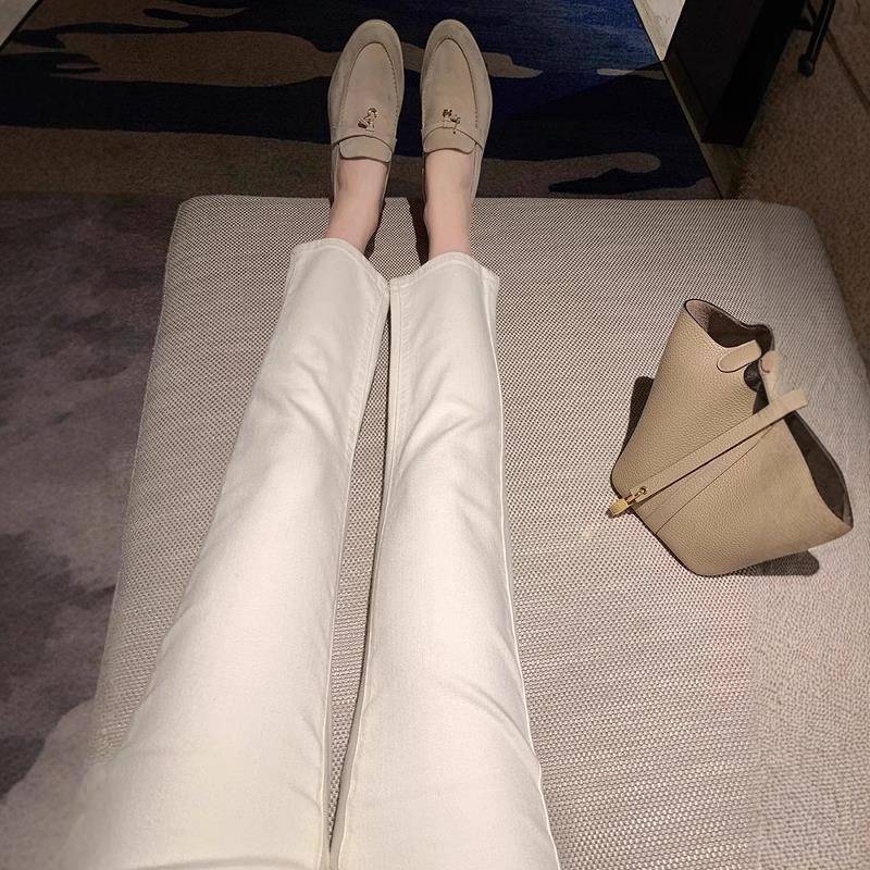米白色直筒春秋夏季牛仔裤女2025新款薄款八九分小个子弹力烟管裤