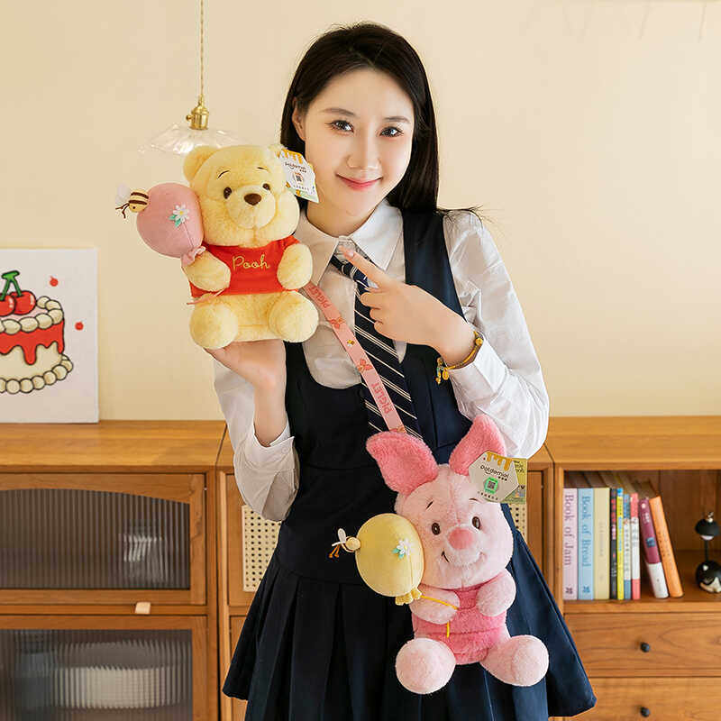 正版抓蜜蜂小猪皮杰维尼熊公仔玩偶可爱包包女单肩包斜挎背包