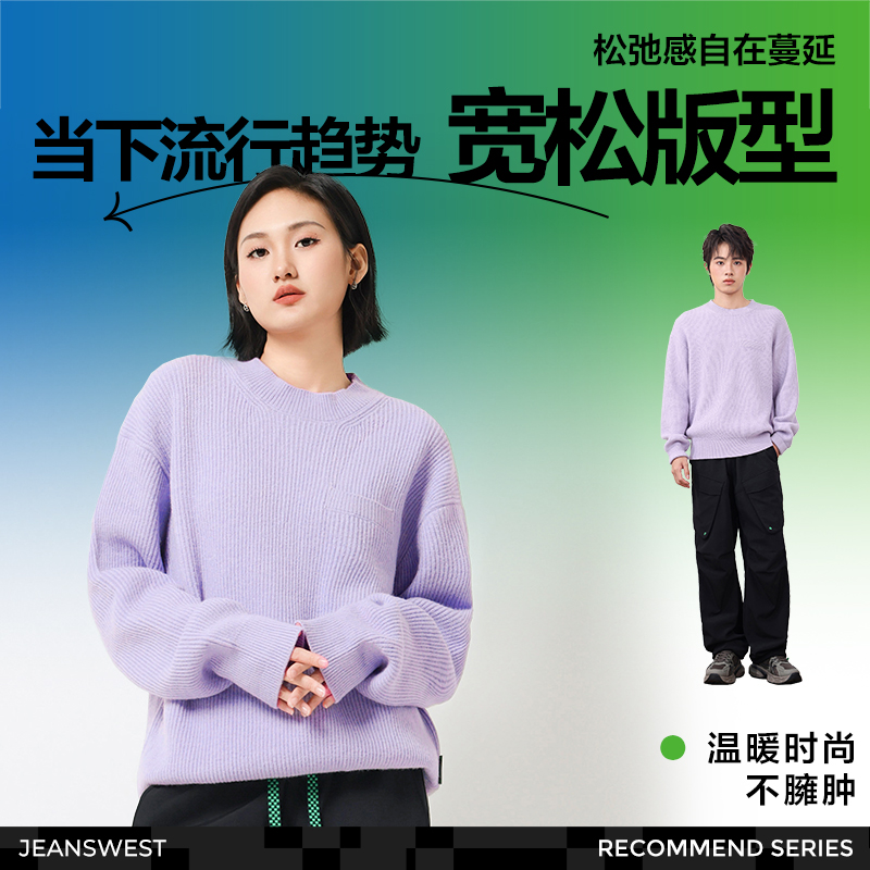 【王一博同款】真维斯紫色毛衣秋季慵懒宽松男女同款情侣针织衫J9