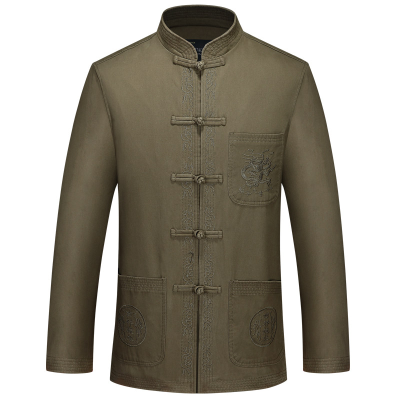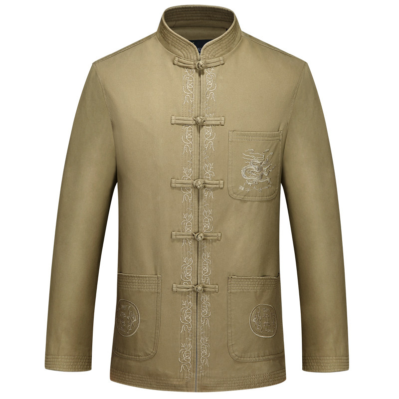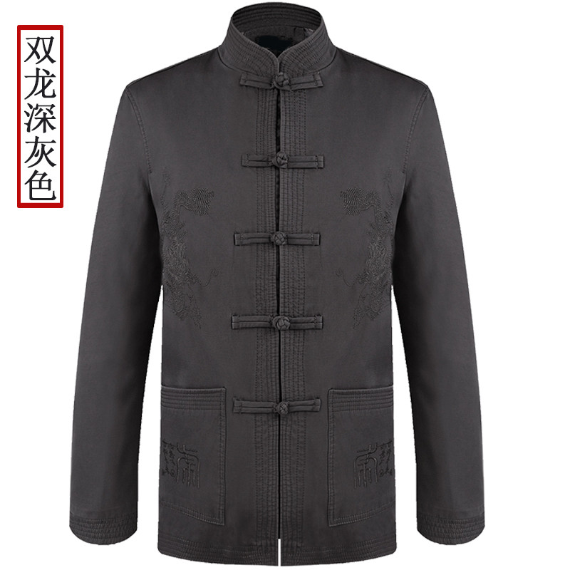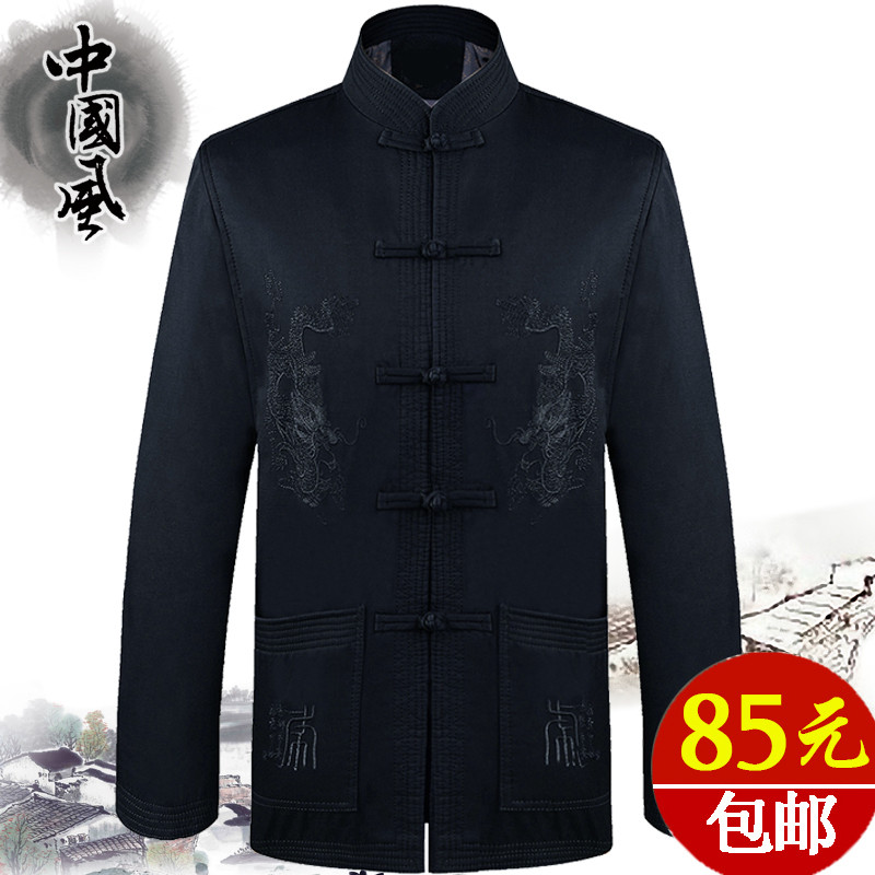 春秋唐装夹克男式纯棉外套中老年中式汉服长袖上衣休闲爷爷装包邮
